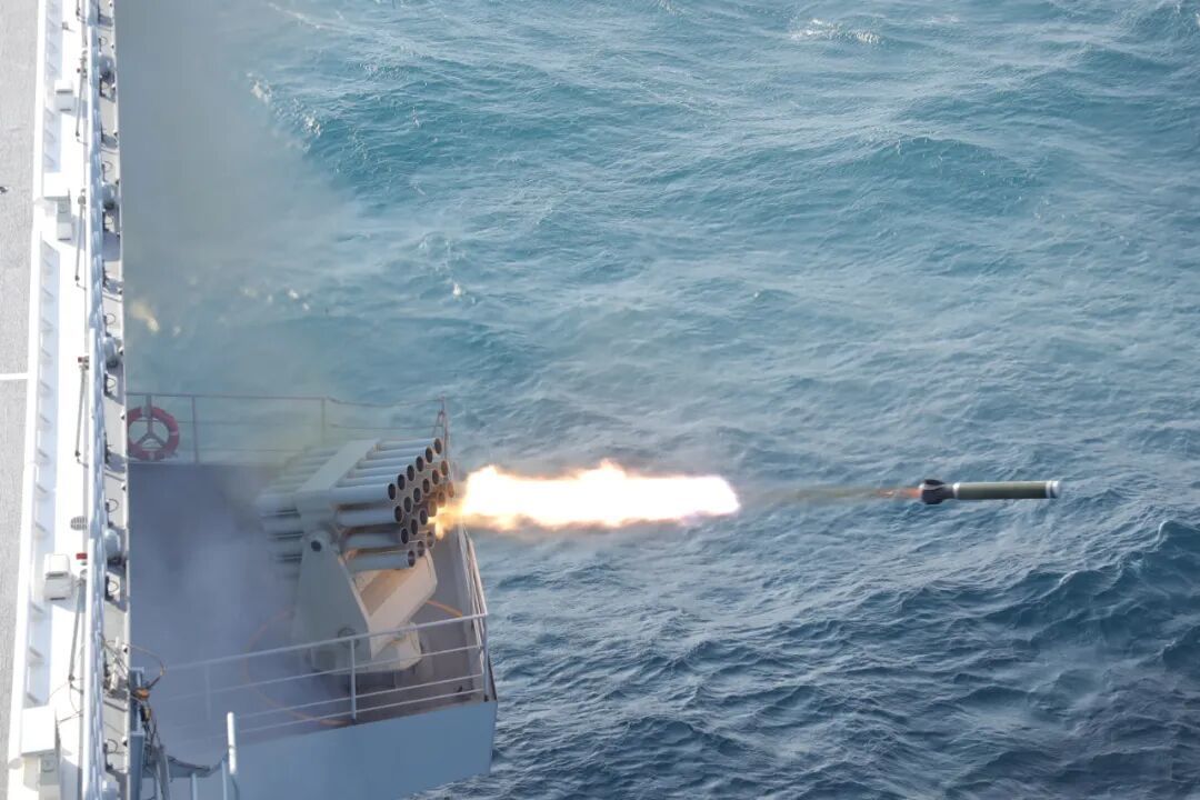 湖北舰发射数枚干扰弹实施对“敌”干扰