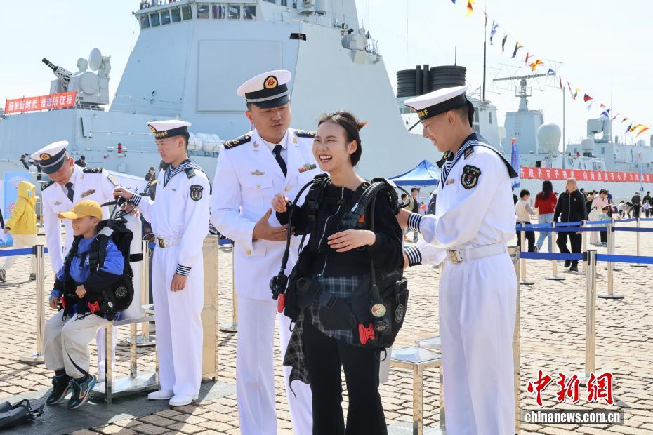 4月22日,人民海军成立77周年北部战区海军舰艇开放活动在山东青岛拉开序幕,吸引大量民众登舰参观。4月23日是人民海军成立77周年纪念日,海军于23日前后在中国十多个城市举行军营开放活动,四十多艘现役舰艇将与公众见面。本次活动,北部战区海军在青岛的两个码头开放6艘舰艇,将持续至4月26日。图为民众体验海军官兵训练科目。