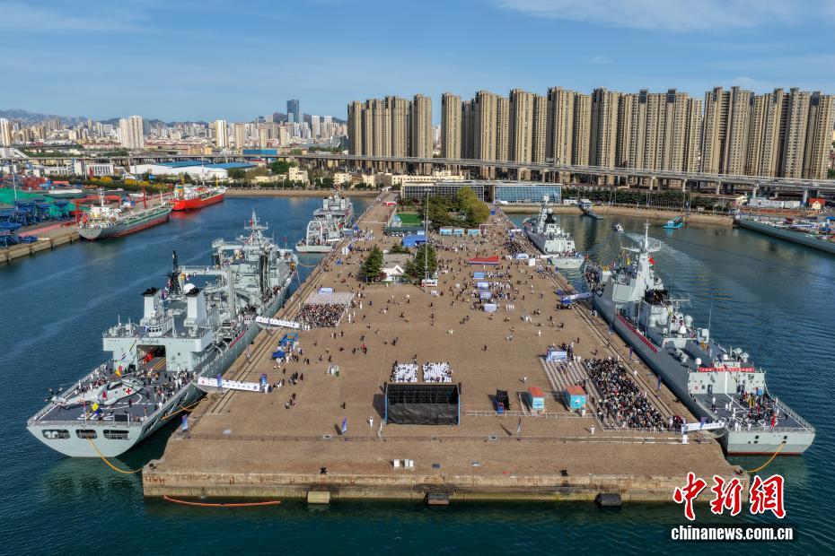 4月22日,人民海军成立77周年北部战区海军舰艇开放活动在山东青岛拉开序幕,吸引大量民众登舰参观。4月23日是人民海军成立77周年纪念日,海军于23日前后在中国十多个城市举行军营开放活动,四十多艘现役舰艇将与公众见面。本次活动,北部战区海军在青岛的两个码头开放6艘舰艇,将持续至4月26日。图为航拍青岛港三码头活动现场。(无人机照片)