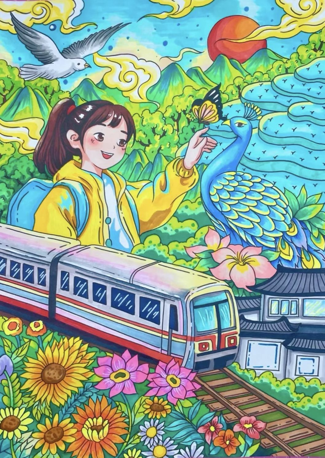 小时候,我和妈妈总会坐火车去秦皇岛看望爸爸。那时的绿皮火车,速度很慢,从家到爸爸工作的地方,往往要十几个小时。一望无际的田野,蜿蜒流淌的小河,古朴宁静的村庄……这些画面,就像一幅幅生动的画卷,深深地印在了我的脑海里。书页中的山川湖海与车窗外的广袤天地相遇,铁路成了我认知世界的移动课堂。