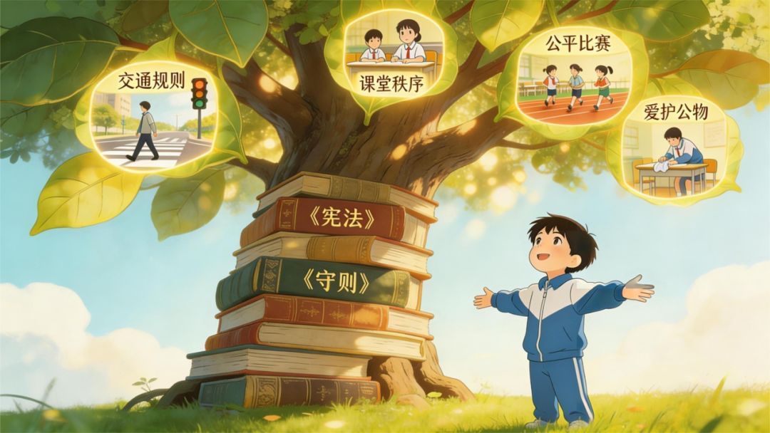 现在我终于明白,法治不是冰冷的约束,而是温暖的守护。它藏在赛场的规则里,让比赛公平公正;藏在校园的纪律里,让学习井然有序;藏在社会的公约里,让生活更安全美好。作为学生,我们既要做规则的遵守者,也要做规则的守护者。从遵守校园规则开始,从尊重他人权利做起,让法治的种子在心里生根发芽,用规则的力量守护我们的成长之路。