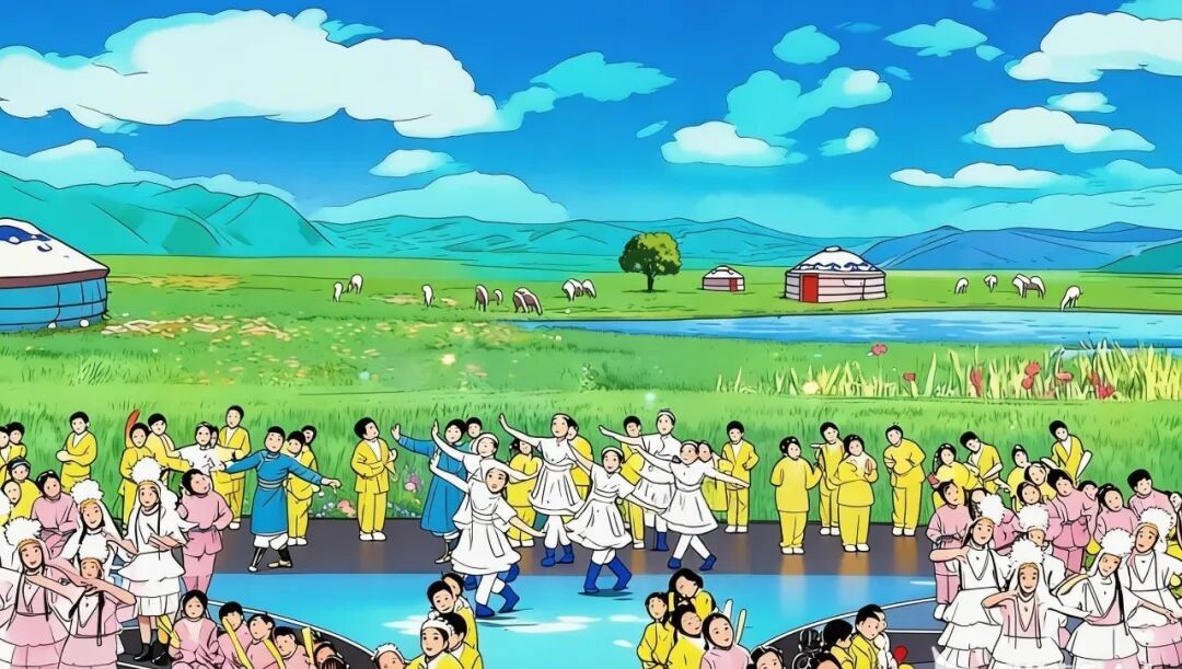 排练很辛苦,有个动作我怎么也跳不好,急得快要哭了。这时,一个穿傣族长裙的小姐姐走过来,轻轻拉住我的手:“别着急,我教你。”她的手暖暖的,带着我慢慢旋转。休息时,高山族小哥哥递给我一瓶水,维吾尔族姑娘教我扭脖子,我学得歪歪扭扭,把大家都逗笑了。那一刻,我心里热热的,一点也不觉得累了。