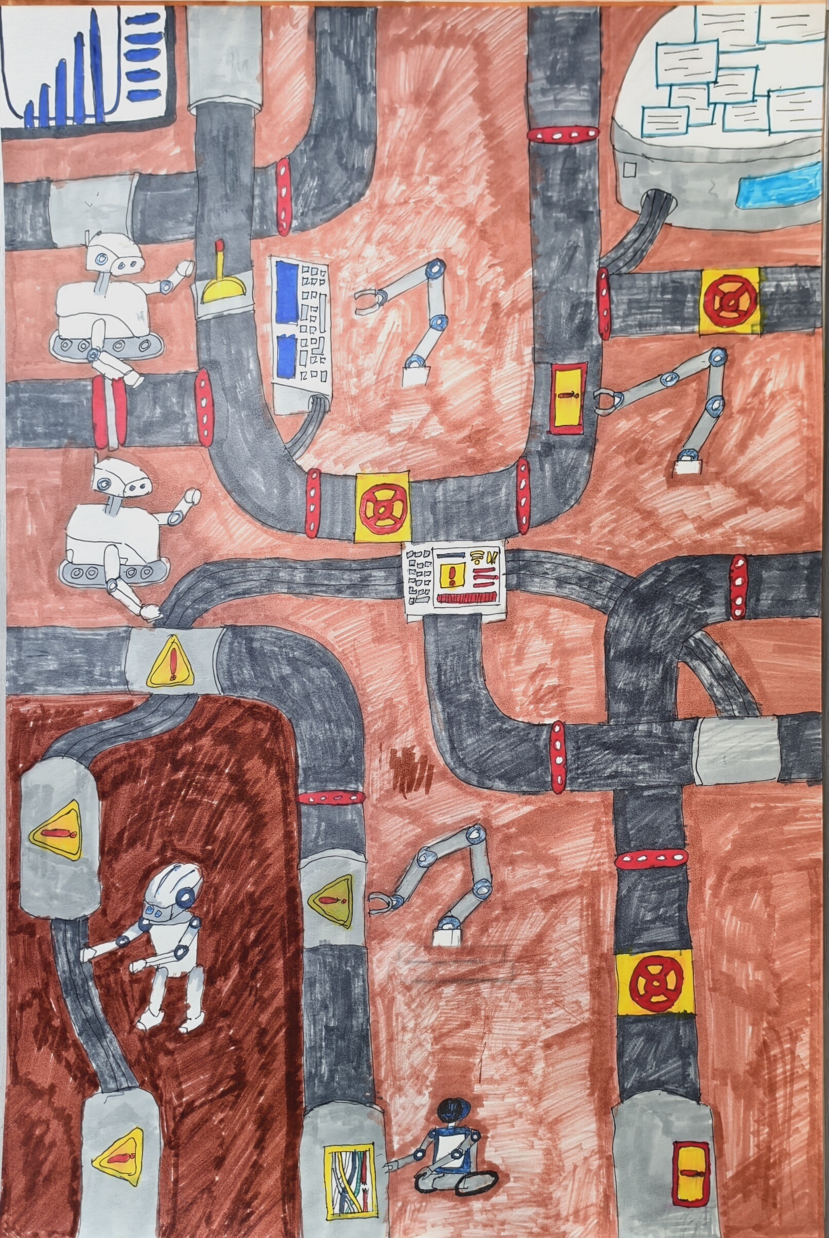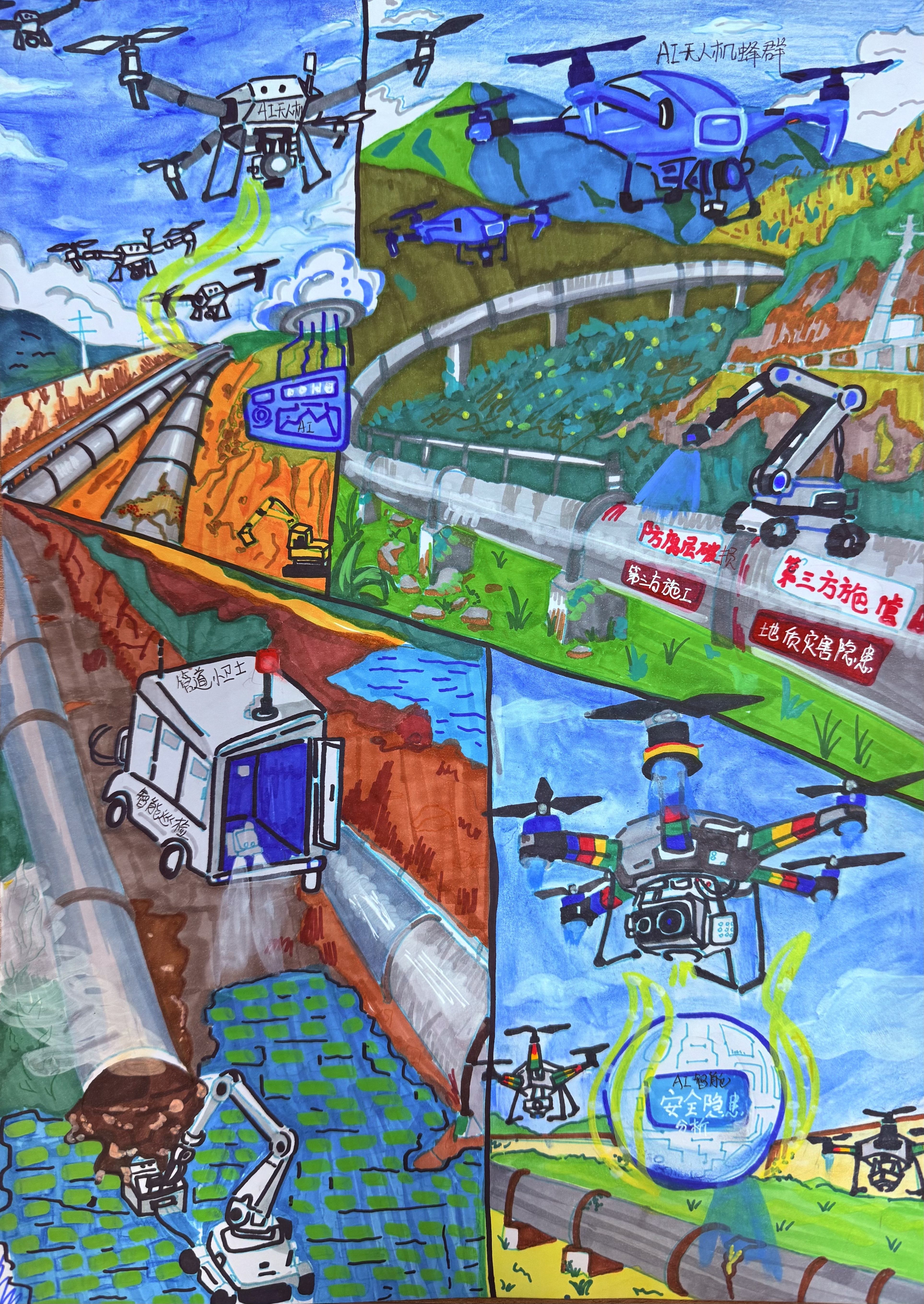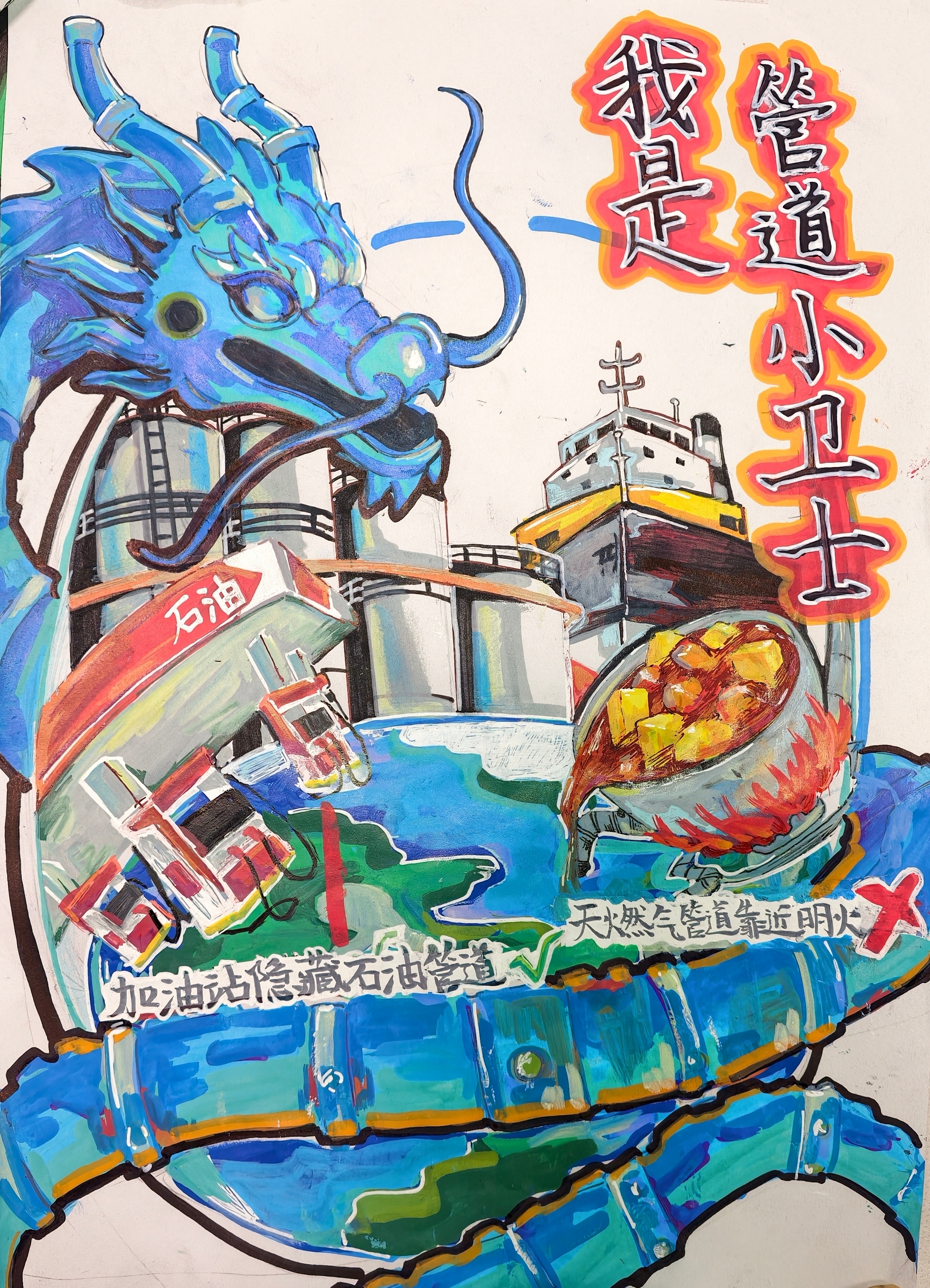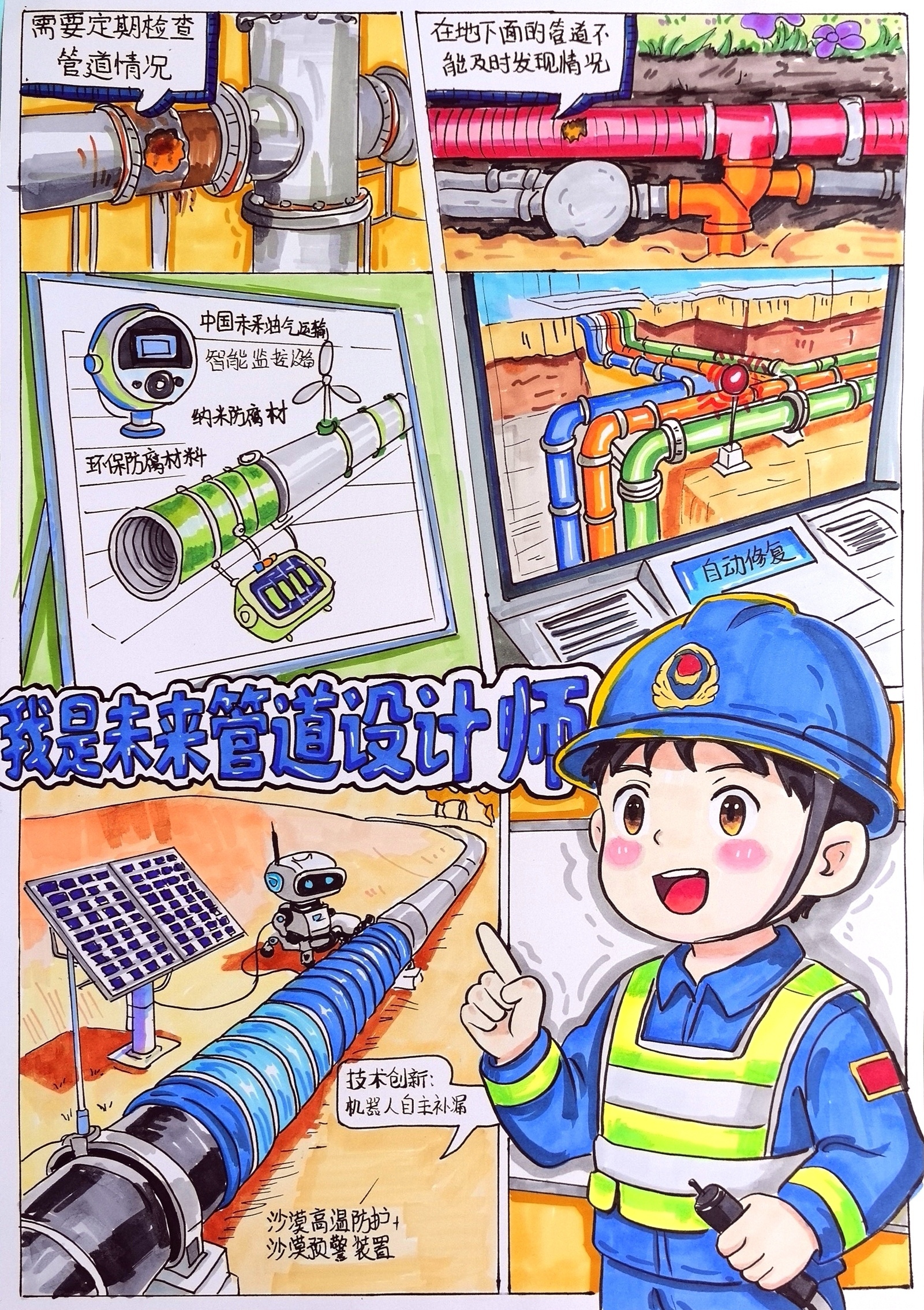 同学们化身“管道小侦探”,用敏锐的观察力捕捉细节;担当“管道小卫士”,用清晰的笔触描绘守护之道;畅想“未来设计师”,用绚丽的色彩勾勒智慧蓝图。每一份绘画、每一篇文章、每一个视频,都承载着同学们对国家能源动脉的关切,闪烁着新时代少年独有的责任感与创造力。