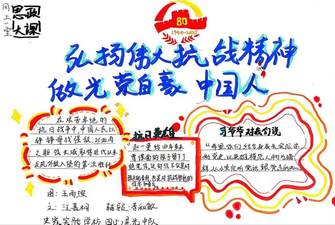 今年暑期,少先队员们积极参与“传承抗战精神 致敬革命先辈”主题队报征集活动。他们用自己手中的画笔绘制了一幅幅精美队报,表达对抗战英雄的致敬。