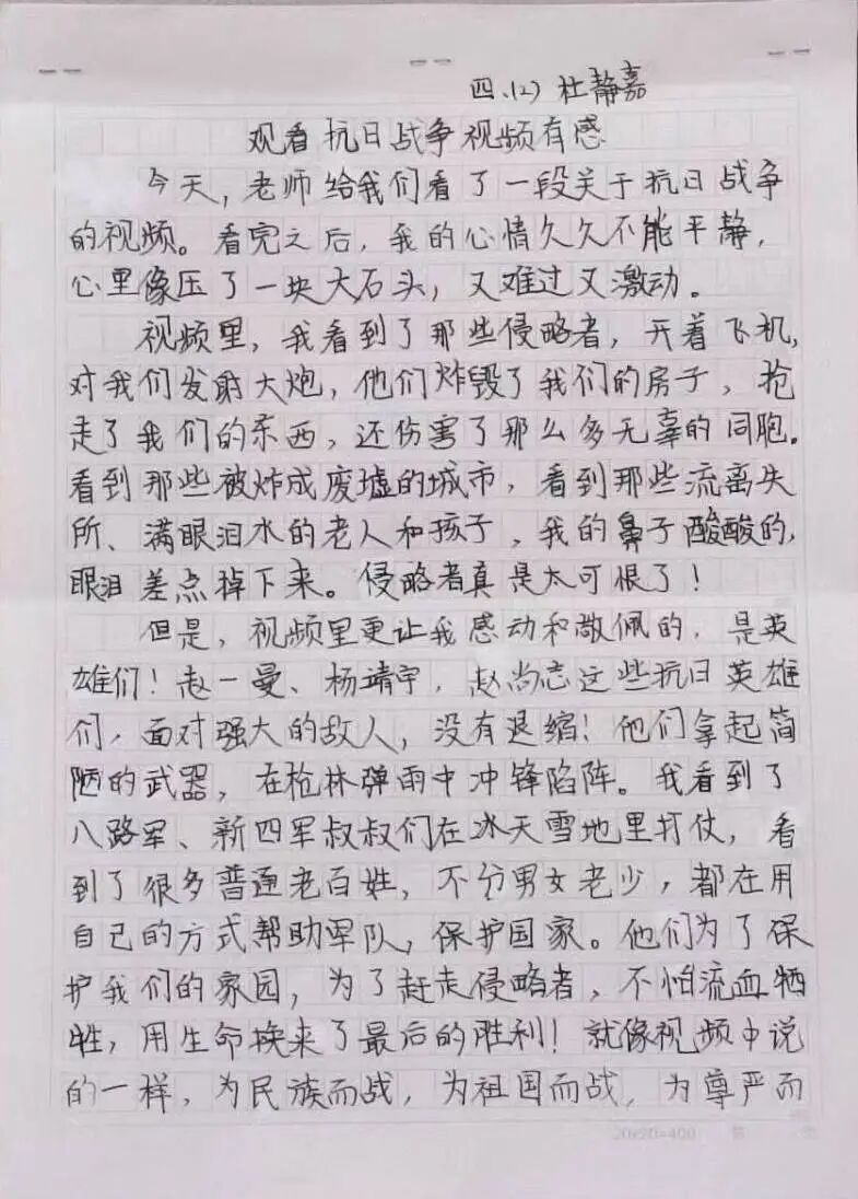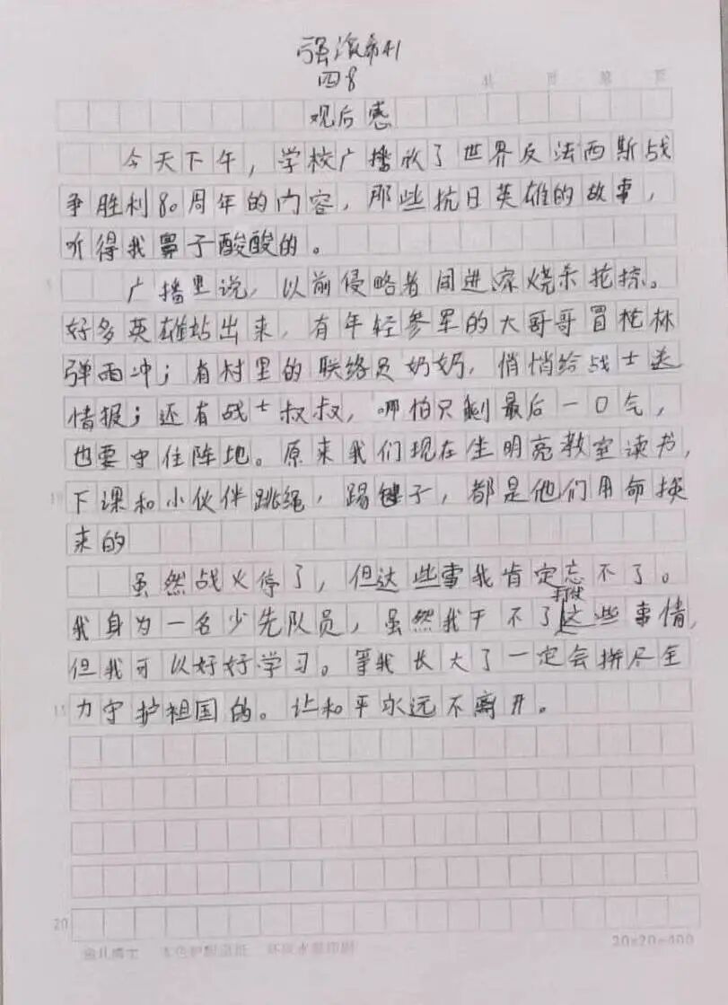 活动后,同学们在道德与法治的课堂上分享了自己的学习感受。很多同学都纷纷表达:历史不能忘记,抗战精神要铭记在心。