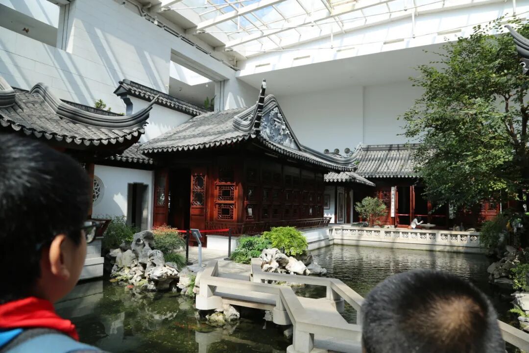 随后队员们乘车前往中国园林博物馆,探寻“先辈守护的是怎样的土地”这一核心问题。刚入馆,圆明园全景巨型雕塑便让同学们惊叹于中华大地的园林瑰宝,直观感受“文化沃土”的厚重。在辅导员引导下,大家穿梭于苏州畅园的精巧雅致、岭南余荫山房的独特风情间,在“中国古代园林厅”追溯造园历史,在“园林文化厅”解读人与自然和谐共生的智慧。