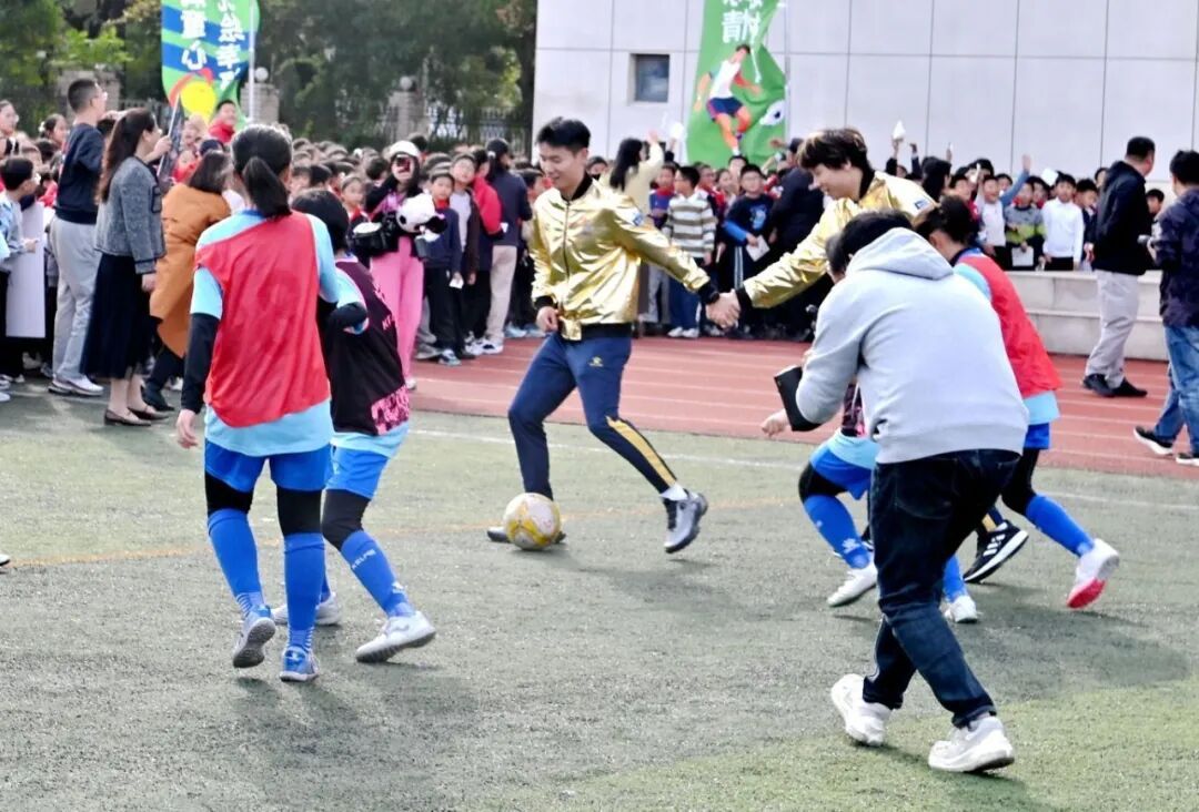 在这个金色的收获季节,泰州多所学校的绿茵场上沸腾着前所未有的激情与梦想。11月3日起,刚刚夺得首届江苏省城市足球联赛(“苏超”)冠军的泰州足球队,带着胜利的荣光与拼搏的热忱,相继走进校园参与“冠军足球课·绿茵薪火传”主题活动,首站来到泰州实验学校为少先队员们带来了一堂生动而深刻的体育精神课。