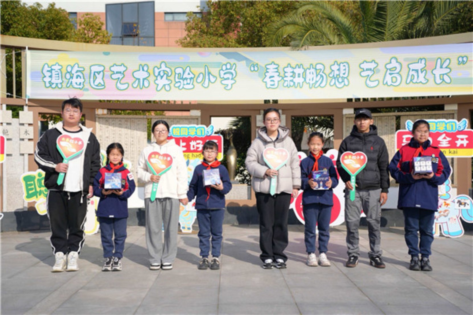 春回大地,万物复苏。宁波市镇海区艺术实验小学将传统春耕文化与植树节的绿色理念相融合,在校园“八音壁”隆重举行了“春耕畅想 艺启成长”主题活动。三至五年级全体学生、艺耕园种植学伴小组以及宁波大学学生代表共同参与了这场充满泥土芬芳与生命力的劳动盛会。