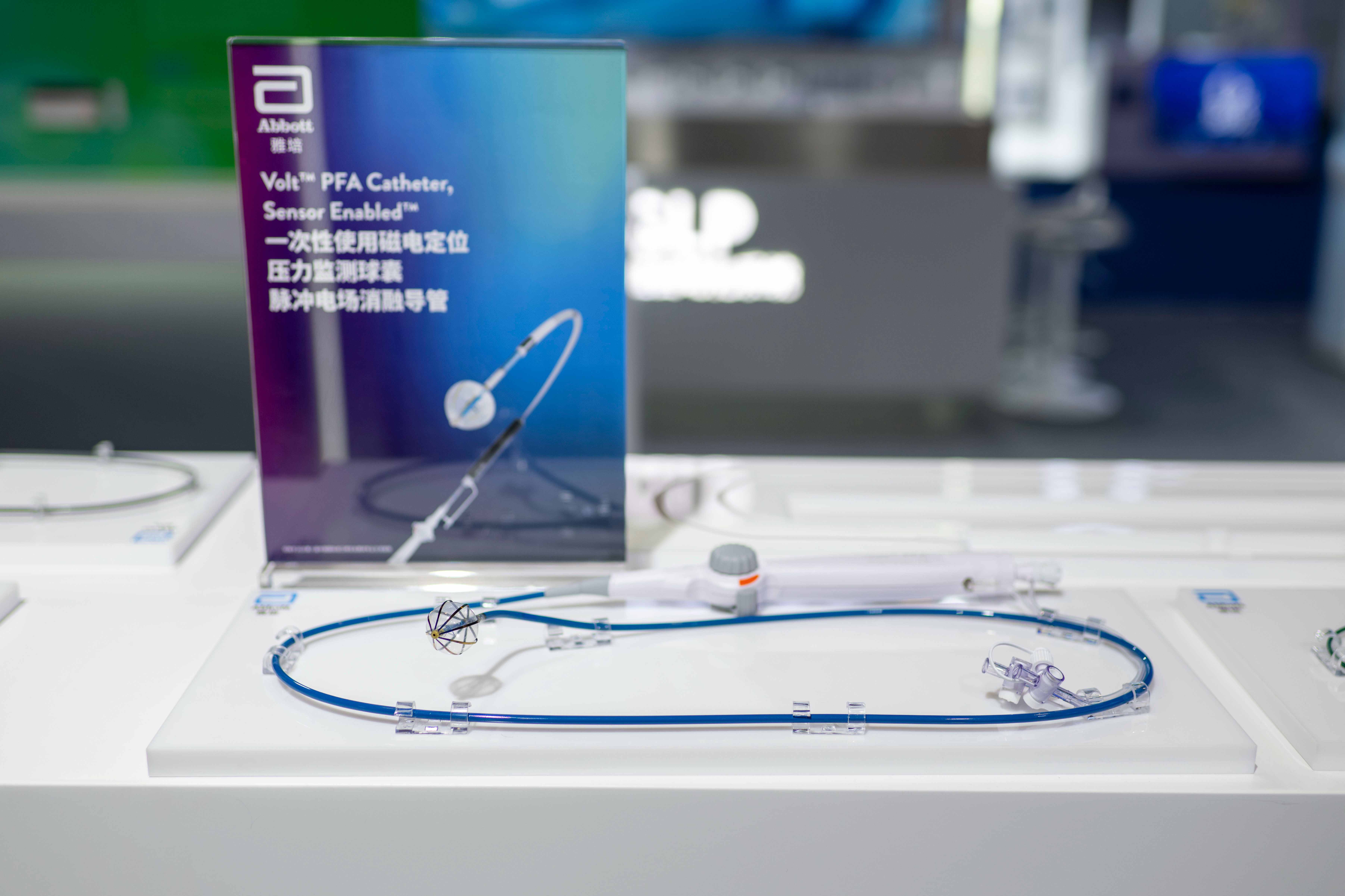 在第八届进博会医疗器械及医药保健展区,雅培带来亚洲首秀的Volt™ PFA一次性使用磁电定位压力监测球囊脉冲电场消融导管。人民网记者 翁奇羽摄