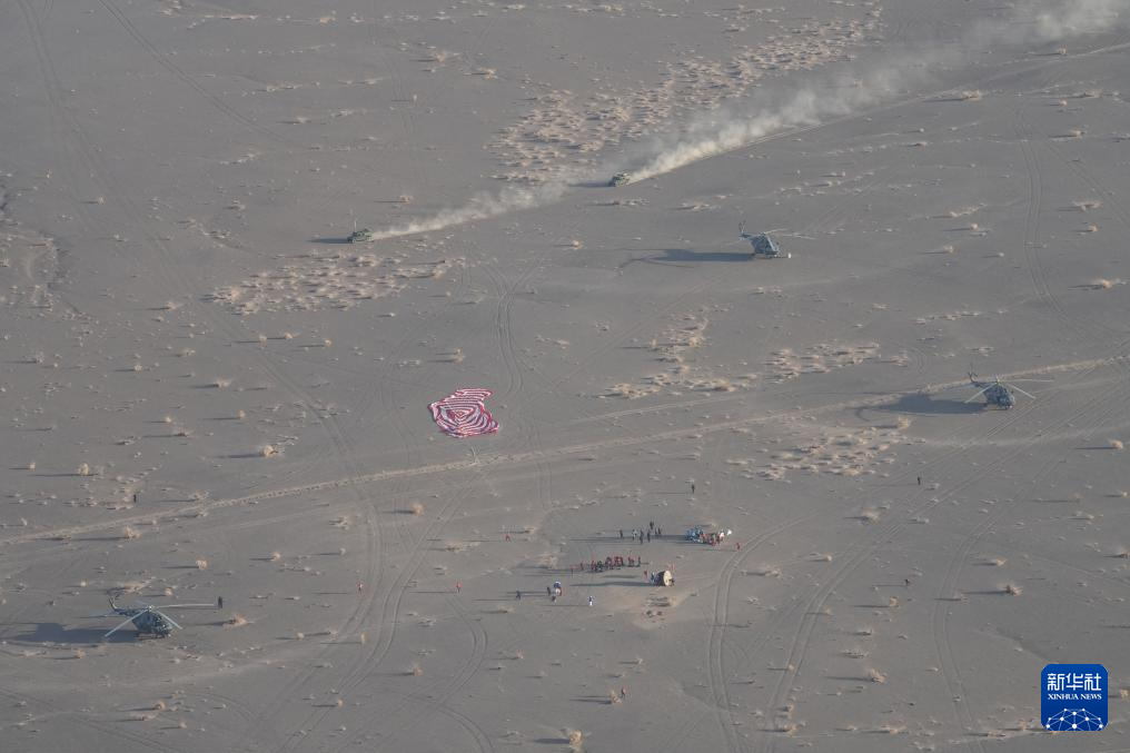 11月14日,载着神舟二十号航天员乘组的神舟二十一号载人飞船返回舱在东风着陆场成功着陆。新华社发(汪江波 摄)