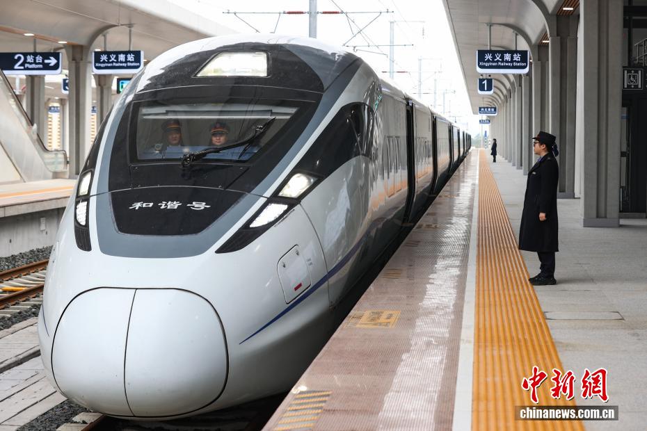 11月20日,贵州省兴义市,贵阳机务段司机驾驶55936次运行试验列车驶出兴义南站。贵州盘州至兴义高速铁路(盘兴高铁)全长约99公里,设计时速250公里,自沪昆客专盘州站引出,经盘州市石桥镇、响水镇、保田镇进入黔西南州兴义市,是贵州省“市市通高铁”的最后一个项目。盘兴高铁共设车站3座,其中改建盘州站,新建保田站、兴义南站。该高铁将于2025年11月底通车,通车后贵阳至贵州省内8个市(州)中心城市将形成1至2小时高铁交通圈。