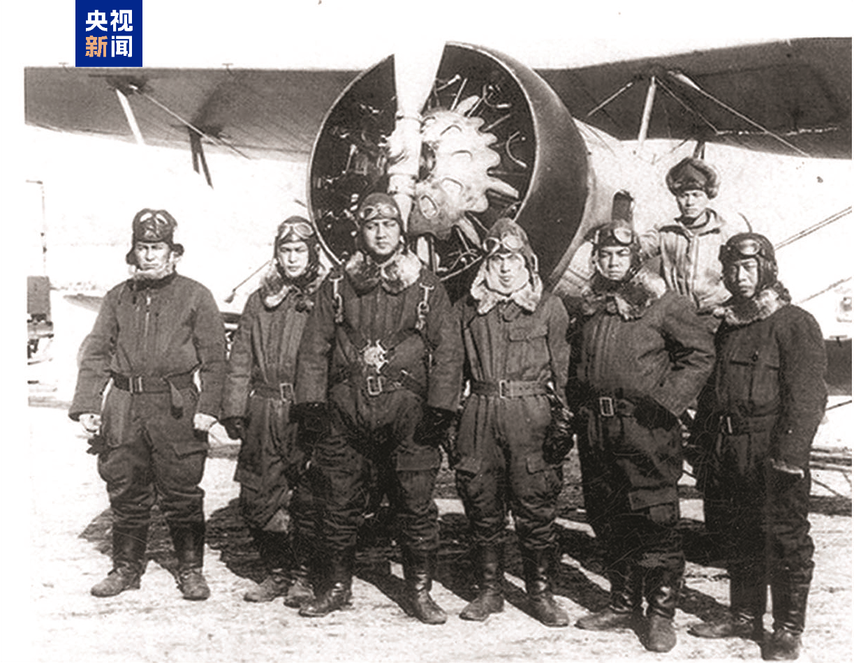 △七三一部队航空班成员,左三为负责在常德上空撒鼠疫菌的增田美保(图片由侵华日军第七三一部队罪证陈列馆提供)
