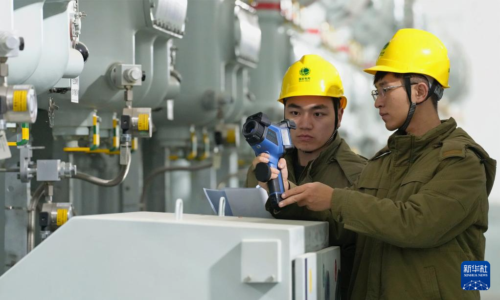 2月17日,在江苏省南通市,运维人员在国网海安220千伏变电站内进行供电设备运行状态监测。