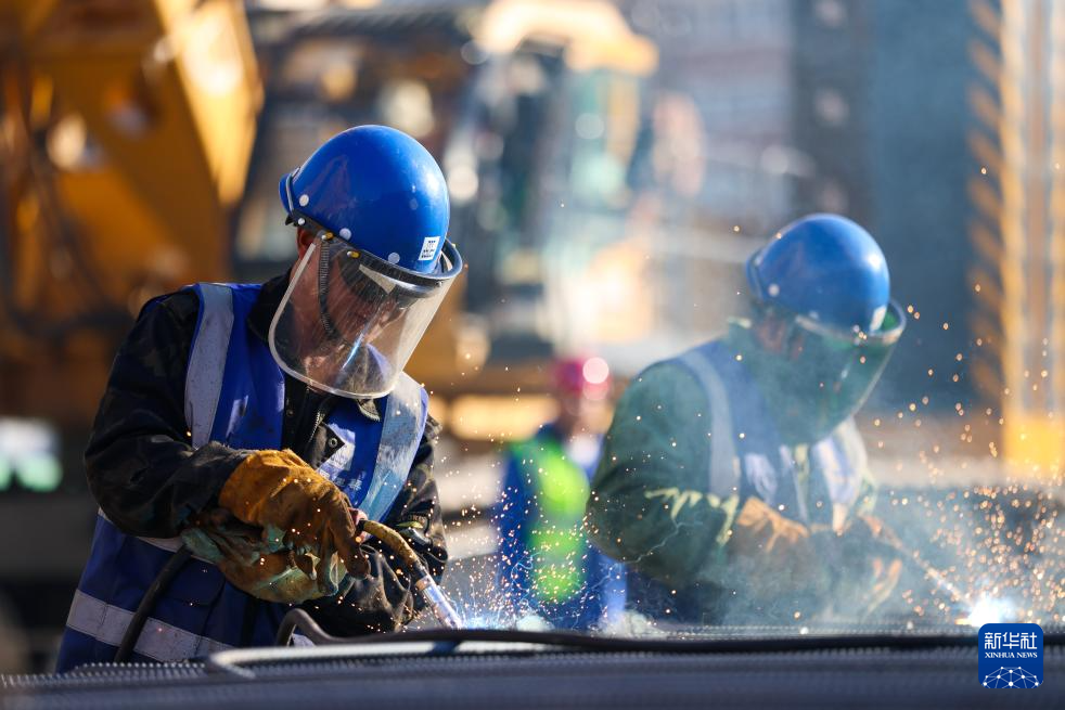 2月18日,施工人员在天津地铁八号线一期工程六里台站建设现场进行钢筋笼焊接作业。