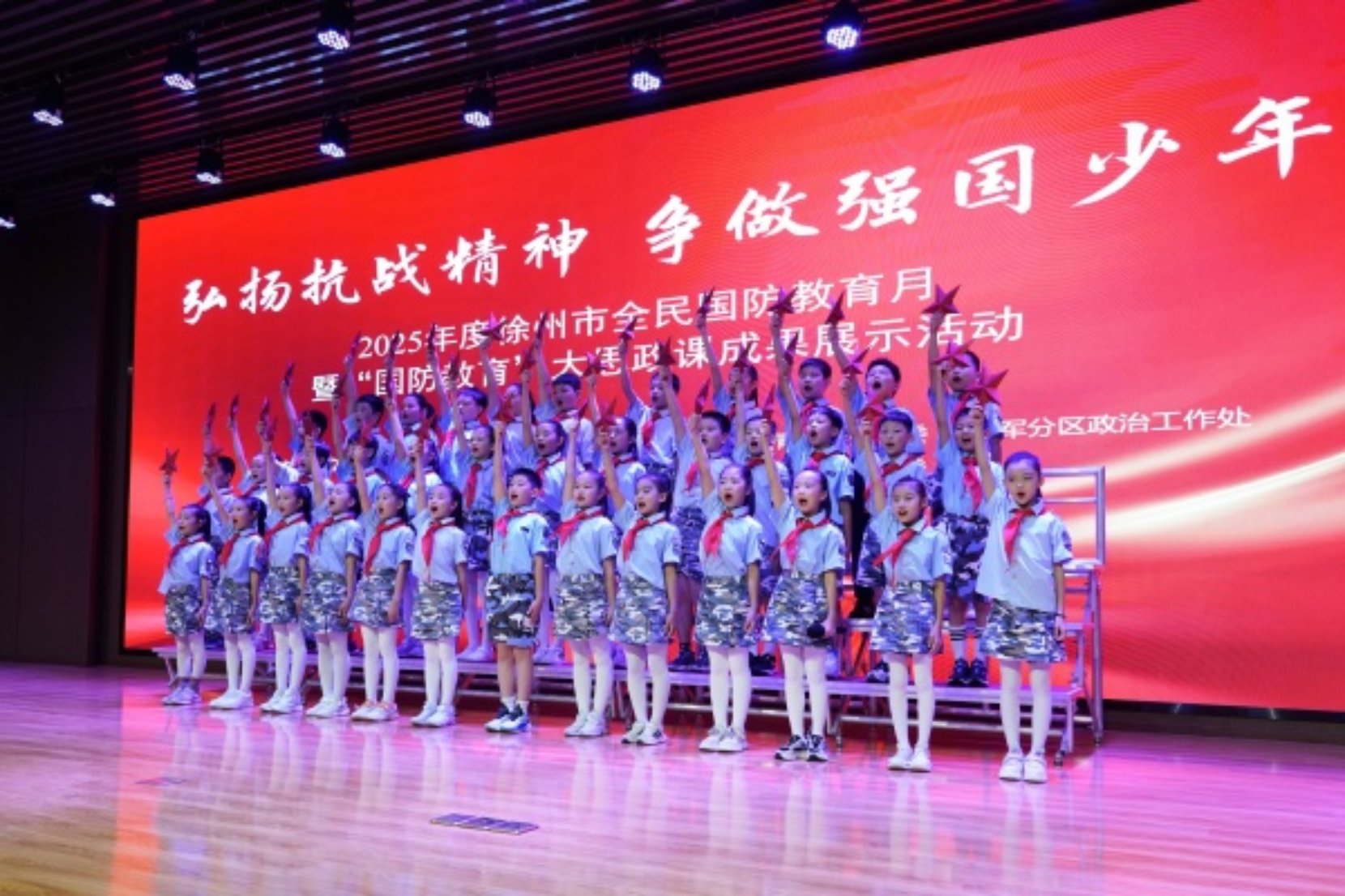 9月26日上午,2025年度徐州市全民国防教育月暨“国防教育”大思政课成果展示活动在徐州市镜泊路学校举行。活动由徐州市委宣传部、教育局、市双拥办、团市委、徐州军分区政治工作处等部门联合主办,徐师一附小教育集团、太阳花实践体验基地组织实施。