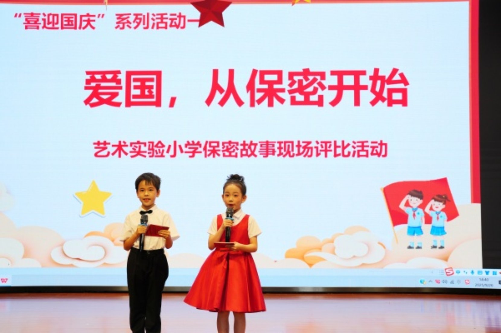 在中国人民抗日战争暨世界反法西斯战争胜利80周年这个特殊纪念日到来之际,为弘扬爱国主义精神,筑牢校园保密防线,国庆前夕,宁波市镇海区艺术实验小学成功举办了“爱国,从保密开始”保密故事现场评比活动。活动特邀宁波市镇海区保密局赵久利老师、校外辅导员宁波小记者裘小春老师等嘉宾参与,与全校师生共同体验了这堂以“爱国,从保密开始”为主题的生动德育课。