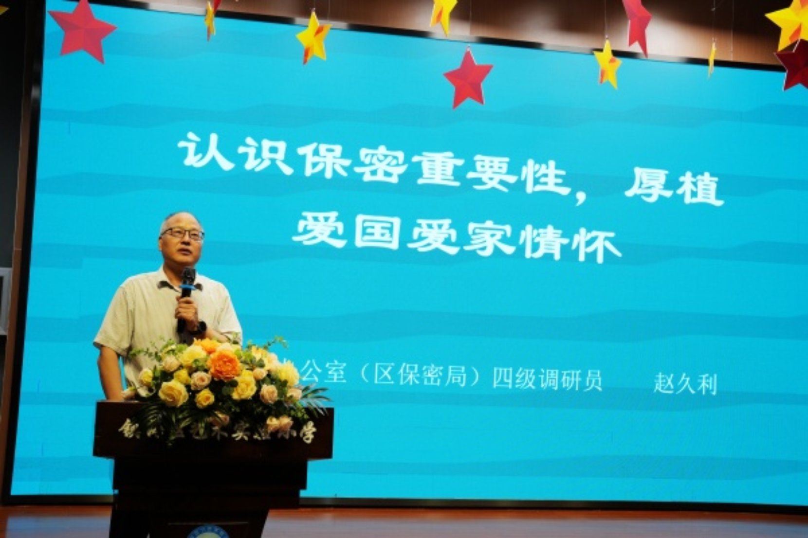 活动还特别邀请了宁波市镇海区保密局赵久利老师为大家带来一场专业而生动的红色保密讲座。赵老师深入浅出地阐述了保密工作的重要性与光荣传统,讲解了保密的基本知识与等级划分,并通过两个生动的科学家保密故事,进一步强调了保密就在身边。讲座中还穿插了有趣的有奖问答互动环节,学生们踊跃参与,在轻松愉快的氛围中巩固了保密知识。