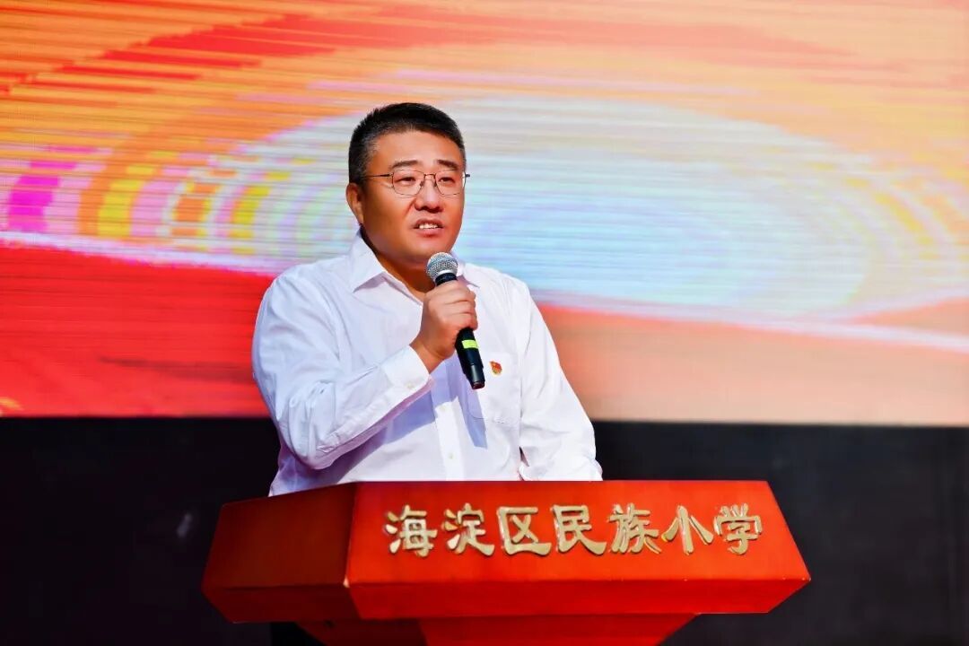 在海淀区民族小学庆祝新中国成立76周年“我爱你,中国”主题活动中,丁凤良校长结合三大篇章,向学生提出三点期许: