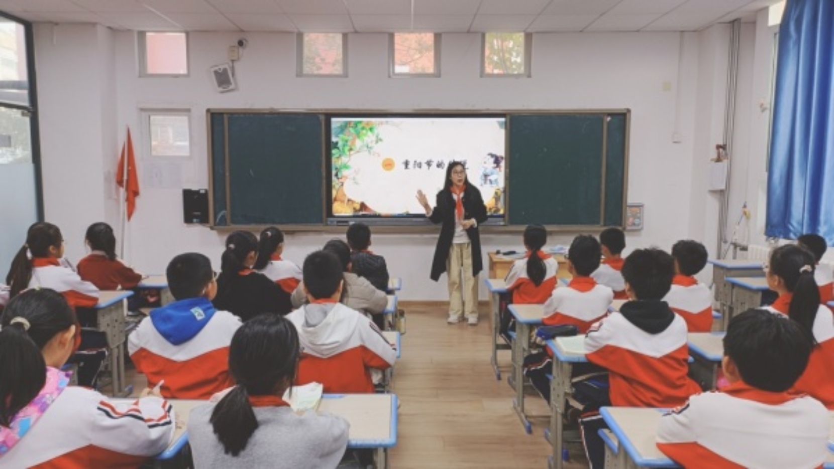 主题队会上,各中队以“话说重阳”为核心,通过生动的传说故事、趣味的知识问答、直观的节日视频,让队员们深入了解重阳节的起源与习俗,知晓“登高”“赏菊”“插茱萸”背后的文化内涵。