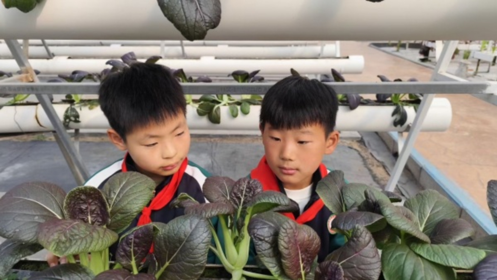 在太空农业馆,同学们了解植物组织培养和无土栽培技术,明白光照、水分、温度、养分、空气等植物生长五大要素的关键作用,学习航天育种的原理、优势,认识各种航天育种新品种蔬果,并观察太空作物的性状变化,感受航天育种和现代农业的奥秘,深化对“科技与自然和谐共生”的认知。