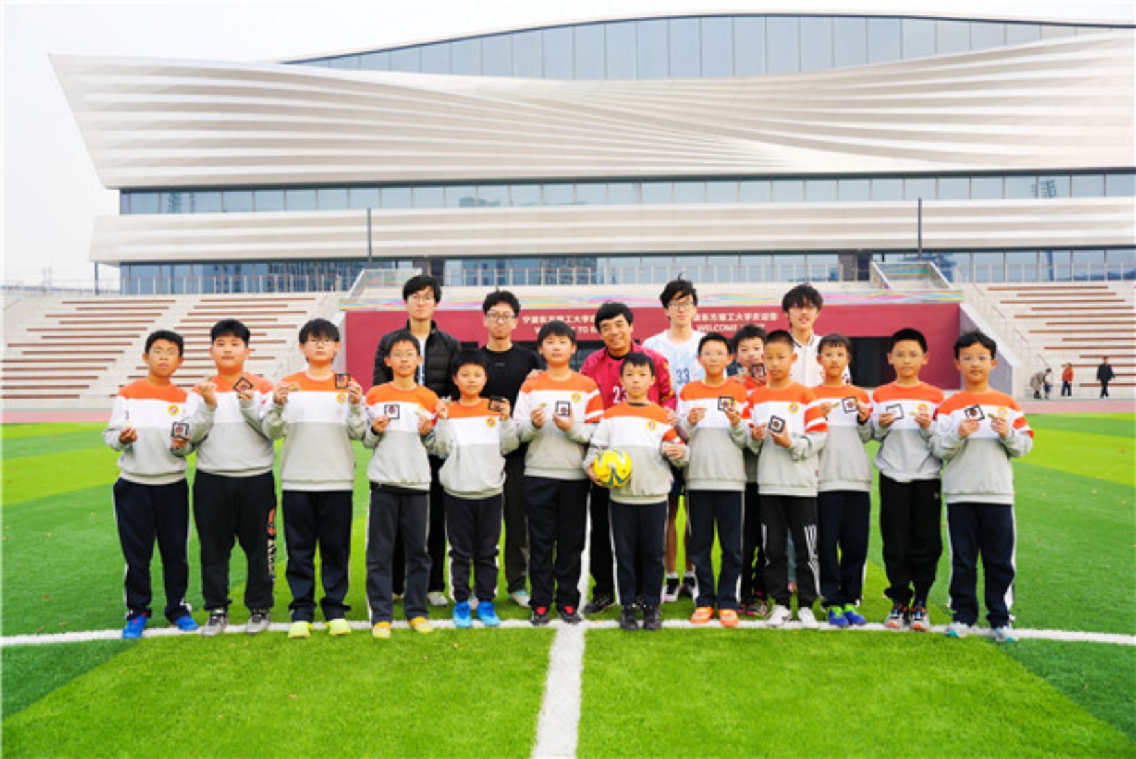 12月20日下午,冬日暖阳洒在宁波东方理工大学的绿茵场上,一场别开生面的足球友谊赛正在这里进行。来自镇海区中心学校的13位足球少年,与东方理工杰出学者、加拿大工程院院士陈掌星、几位东方理工的大一同学们,同场奔跑、传递足球,也在运动中传递着坚持与热爱的精神薪火。