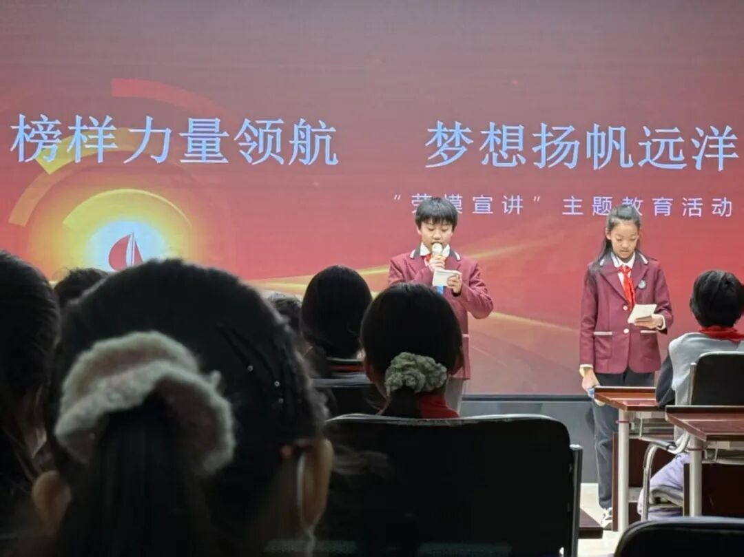 为学习贯彻党的二十届四中全会精神,与少先队员共同回顾“十四五”时期国家发展的辉煌成就,增强对党和国家事业的认同感与自豪感;同时将劳模精神的个体叙事与国家发展的宏大叙事相结合,引导少先队员理解个人奋斗与国家命运紧密相连,扣好人生第一粒扣子,12月23日下午,远洋小学礼堂内掌声雷动,气氛热烈,一场以“榜样力量领航,梦想扬帆远洋”为主题的“劳模工匠进校园”活动在这里隆重举行。师生齐聚一堂,共同聆听“十四五”时期国家发展的辉煌成就、劳模故事,感受榜样力量,上了一堂生动而深刻的思政大课。
