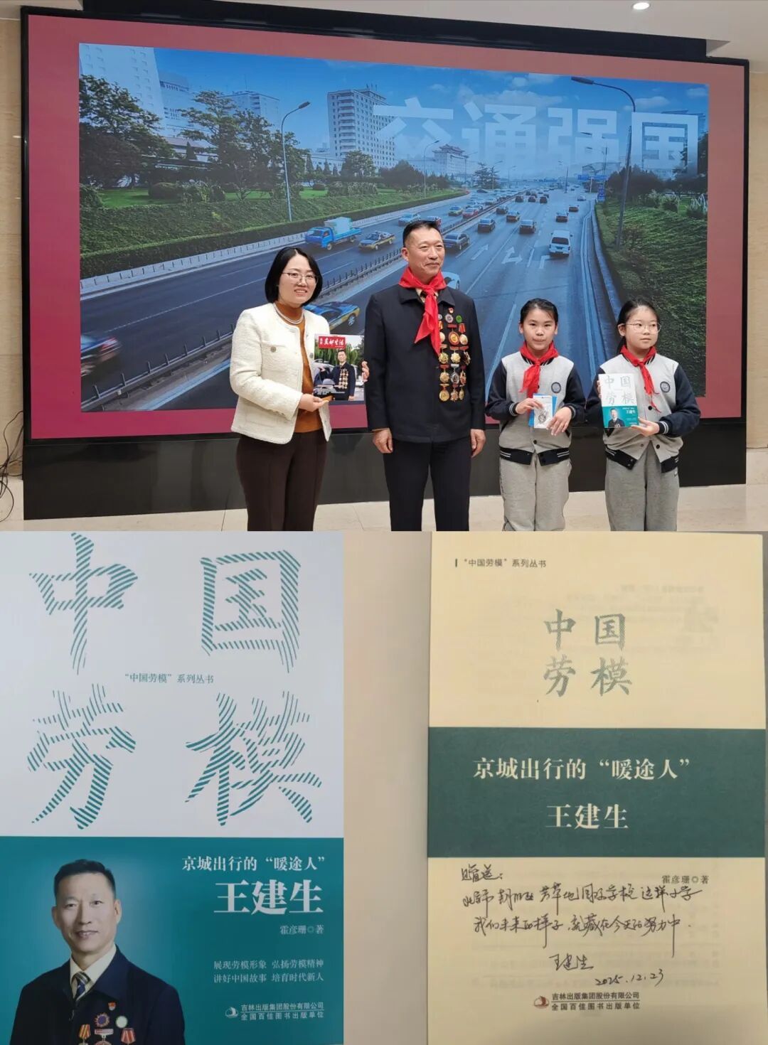 为将这份精神的火种永久传递,劳模王建生同志向学校赠送了书籍,书中记录着他的故事,这本书出自《中国劳模》系列丛书,这套书以图文结合的形式展现模范人物的成长历程,着重讲述每一位模范人物用劳动和匠心在平凡岗位上创造出不平凡业绩的故事。本系列丛书旨在将劳模精神、劳动精神、工匠精神辐射至社会的各层面,促进劳动最光荣、劳动最崇高、劳动最伟大、劳动最美丽的观念蔚然成风,教育引导青少年树立以辛勤劳动为荣、以好逸恶劳为耻的劳动观。少先队员代表郑重地接过赠书,并表示将组织全体队员认真阅读学习,让劳模精神在校园里蔚然成风。随后,韩君英校长为王建生同志颁发了校外辅导员聘书。