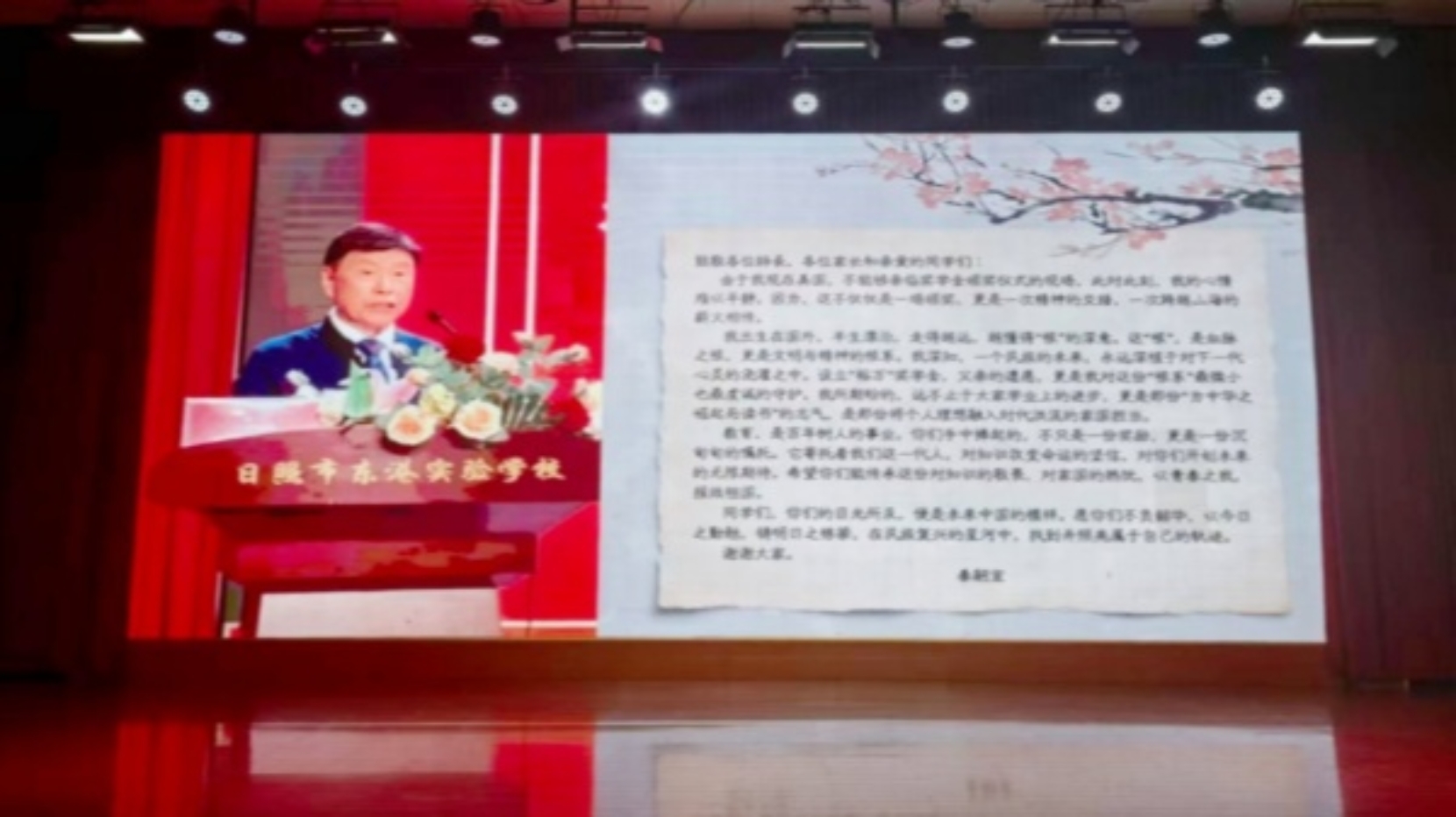 活动现场,日照秦国龙廉洁文化研究会会长秦刚现场宣读秦嗣宣先生撰写的亲笔信,倾情传递其对家乡学子的殷殷嘱托。他深情回溯秦嗣宣先生父辈的故土情结,分享秦嗣宣先生设立“裕万”奖学金的初心使命,对家乡的牵挂、对教育的重视和对学子的期许。信中,秦嗣宣先生勉励同学们珍惜时光、潜心求学,既要学好知识本领,更要涵养家国情怀,始终牢记自己是丝山热土培育的少年,努力成长为栋梁之才,未来不负家乡厚望、不负时代重托,将这份桑梓深情接续传递。