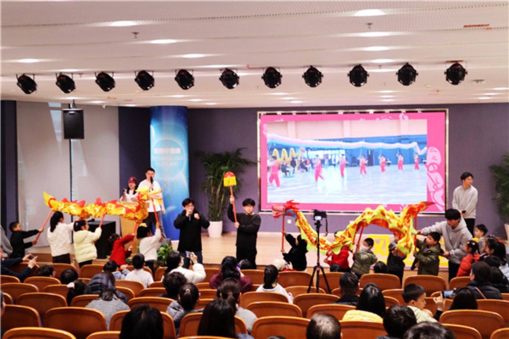 为弘扬中华优秀传统文化,让少年儿童近距离感受非物质文化遗产的独特魅力,在元宵佳节来临之际,宁波少年儿童图书馆“风帆少年”栏目特别邀请北仑职业高级中学舞龙队队员代表来到现场,举办非遗舞龙文化讲座,以趣味讲解、视频展示、互动教学相结合的形式,带领现场小朋友们开启了一段妙趣横生的舞龙文化之旅,让非遗文化在欢声笑语中浸润童心。