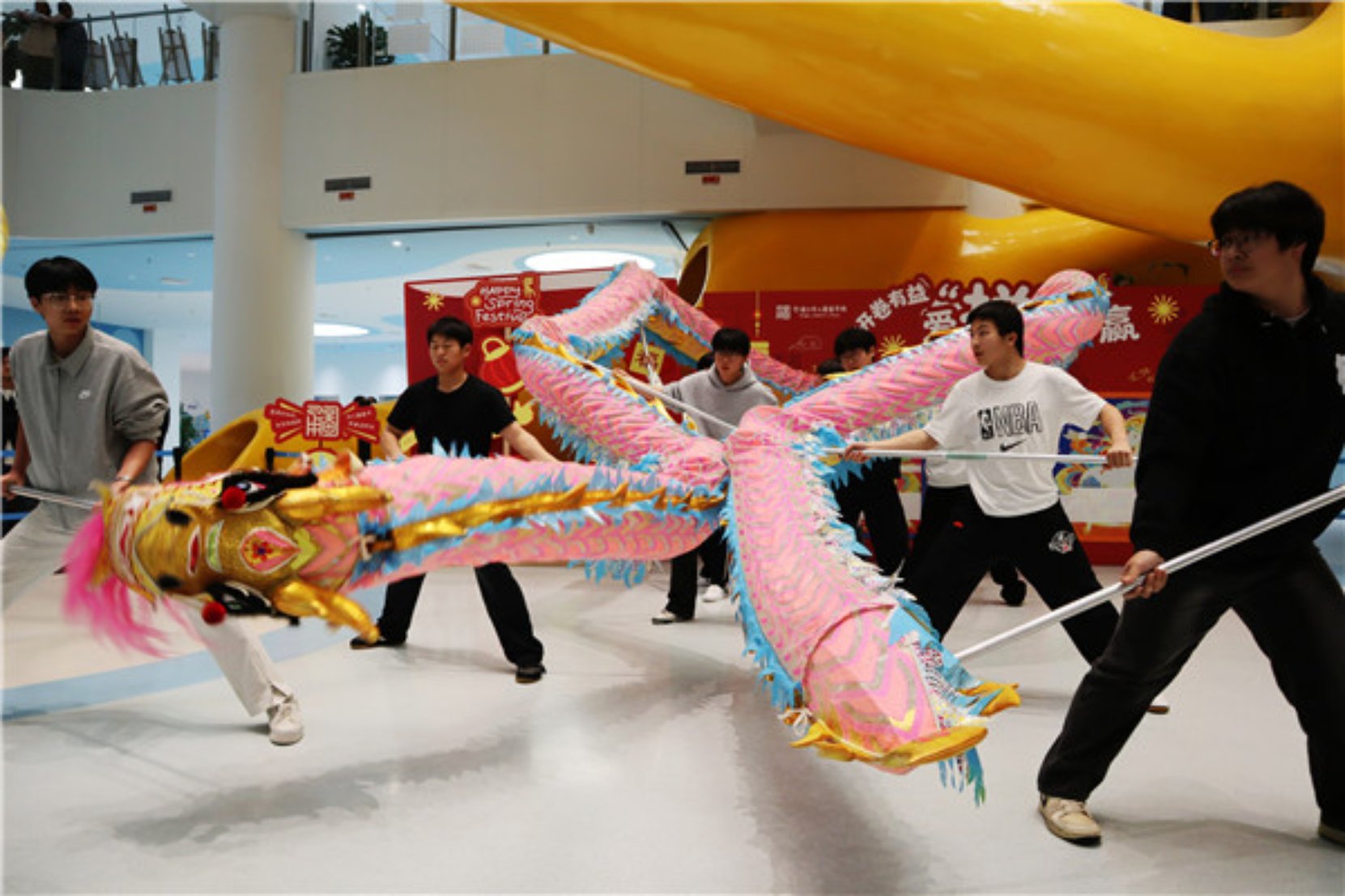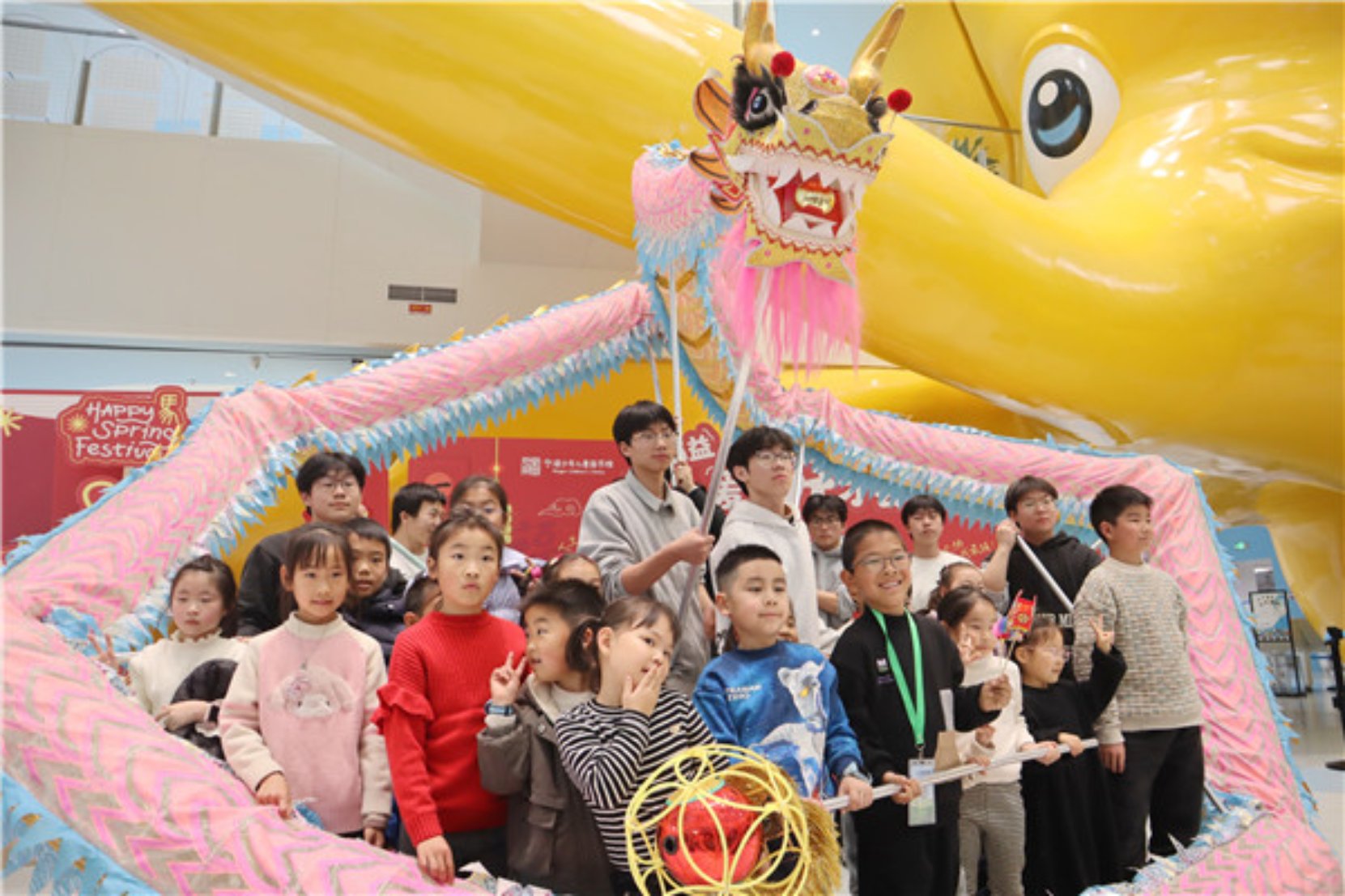 活动最后,北仑职高舞龙队的同学们在宁波少年儿童图书馆一楼大厅,为现场所有的读者朋友献上了一场气势十足的舞龙表演。金龙腾跃、身姿矫健,伴随着铿锵有力的鼓点,队员们默契配合、动作娴熟,将龙的灵动与豪迈展现得淋漓尽致。在元宵佳节即将到来的特殊日子里,这场精彩的表演不仅为图书馆增添了浓浓的年味与喜庆气息,更让在场的每一位观众真切感受到了传统龙狮文化的震撼与魅力。