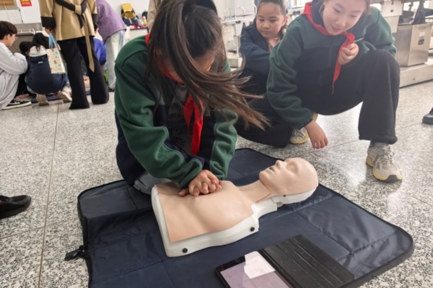 活动中,队员们与医科大学的大学生们近距离交流,虚心请教基础医学知识,学习生活中实用的医学护理知识,并在大学生们的指导下进行“临床小医生”职业体验。在实践中收获不一样的知识,提升职业认知,让梦想的种子在心底生根发芽。