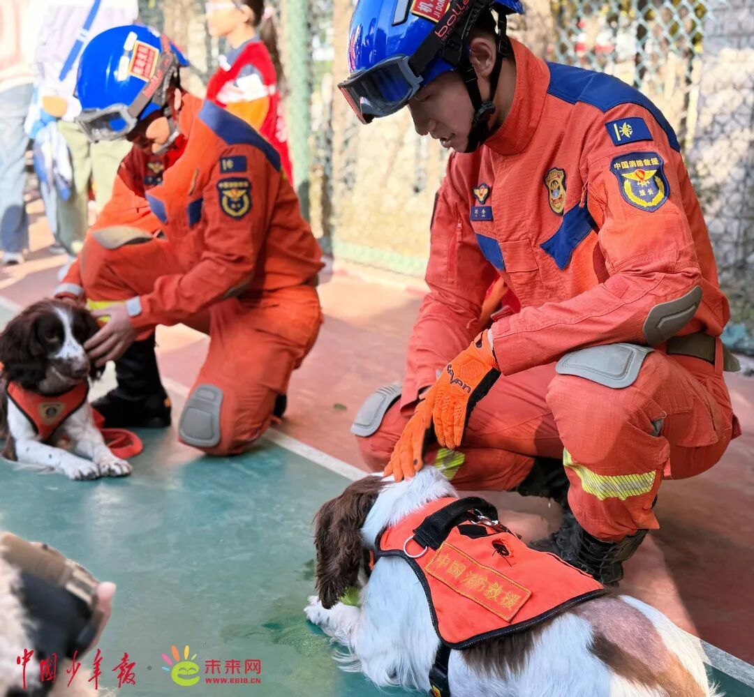 Happy、大熊、皮皮、丸子、七七……别看搜救犬们的名字可爱,它们训练起来可一点也不含糊!在训导员的指令下,它们以极高的服从性展示了随行、定、卧、立、叫等各项技能。“它们眼神专注,简直像小战士!”小记者黄行萱赞叹道。