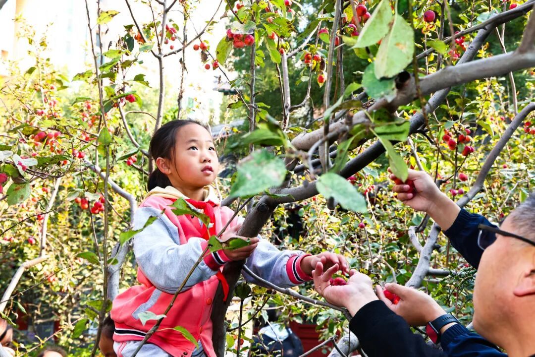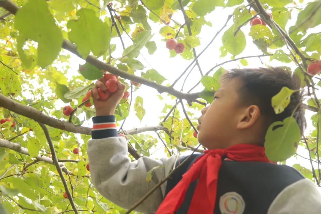 10月28日至29日,南北校区的党团队员代表在科学老师的指导下,开展了校园果实采摘活动。采摘前,科学老师为同学们讲解了果树的生长规律与采摘技巧,让大家在动手之前先“知其所以然”。随后,大家一同采摘了校园中熟透的石榴、红艳的海棠和饱满的山楂。