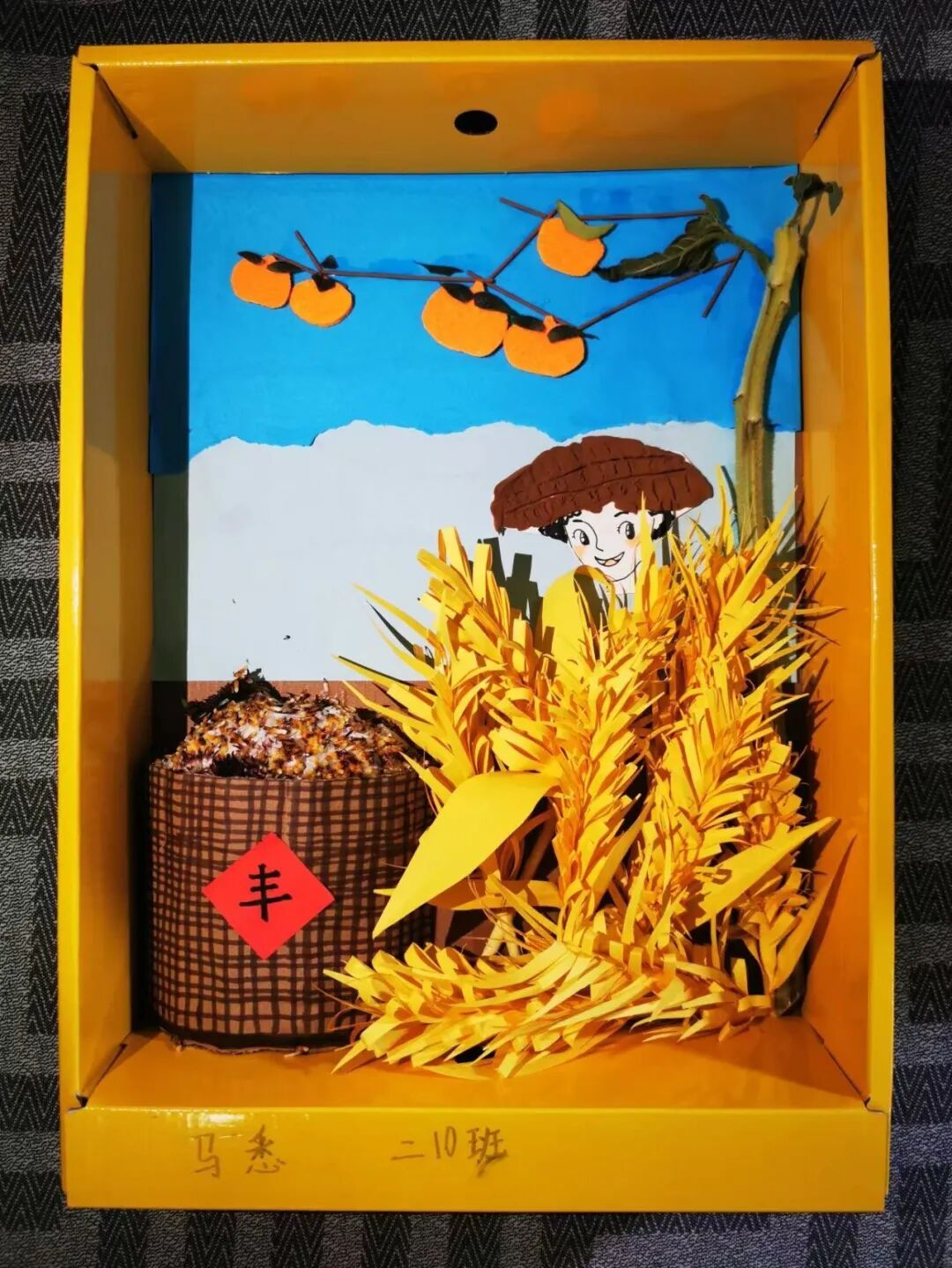 在“创艺颂丰收”环节,全校学生积极参与,以多元的艺术形式表达对丰收与劳动的热爱。有的同学走进田间,与家人共同创作赞颂丰收中国的原创歌曲;有的用画笔描绘金秋的绚烂,用书法书写劳动的赞歌;还有的通过摄影、手工作品记录下劳动的美好瞬间。
