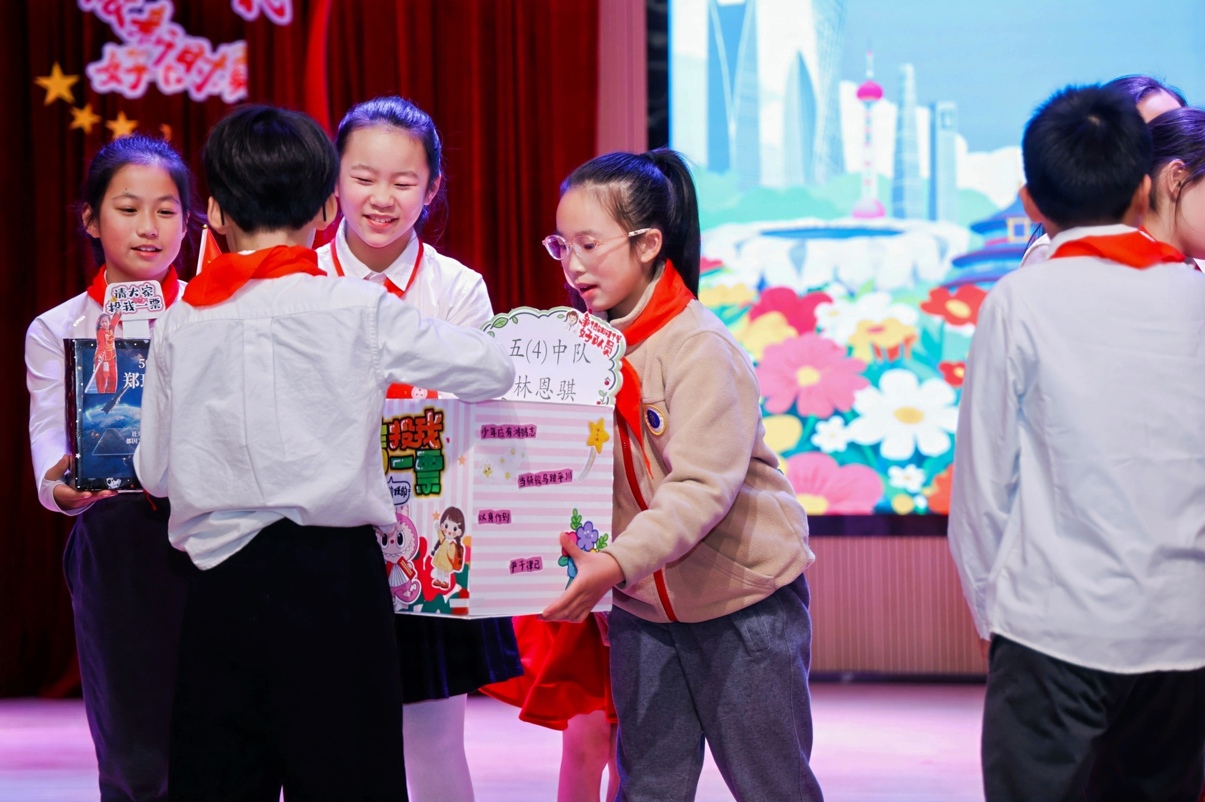 本次大会共有152名少先队员代表、各中队辅导员代表以及学校党支部副书记、副校长冯洁,副校长胡一峰等领导嘉宾共同出席。会议伊始,少先队员代表为与会领导和嘉宾佩戴上鲜艳的红领巾,致以少先队最崇高的敬意。