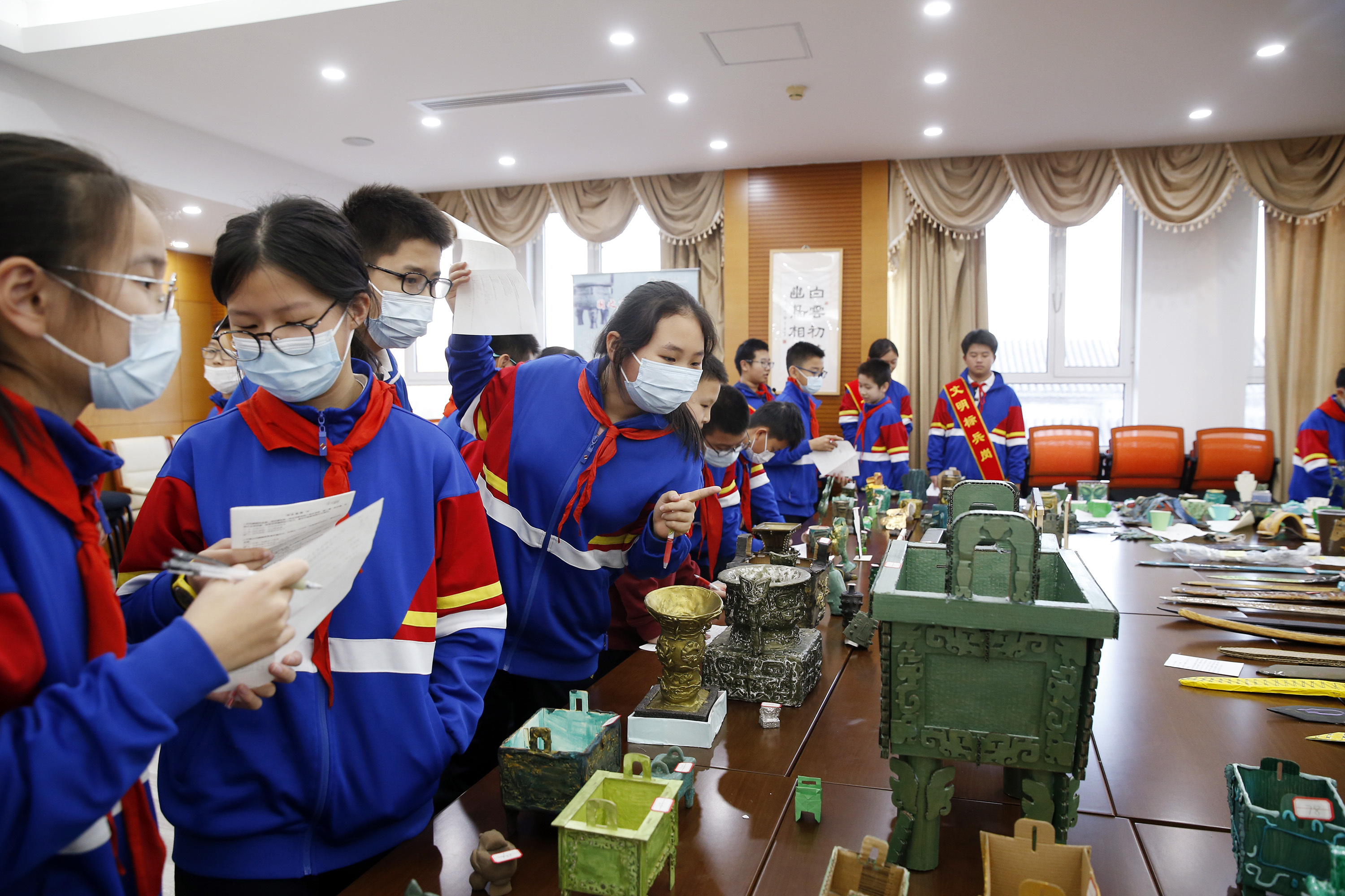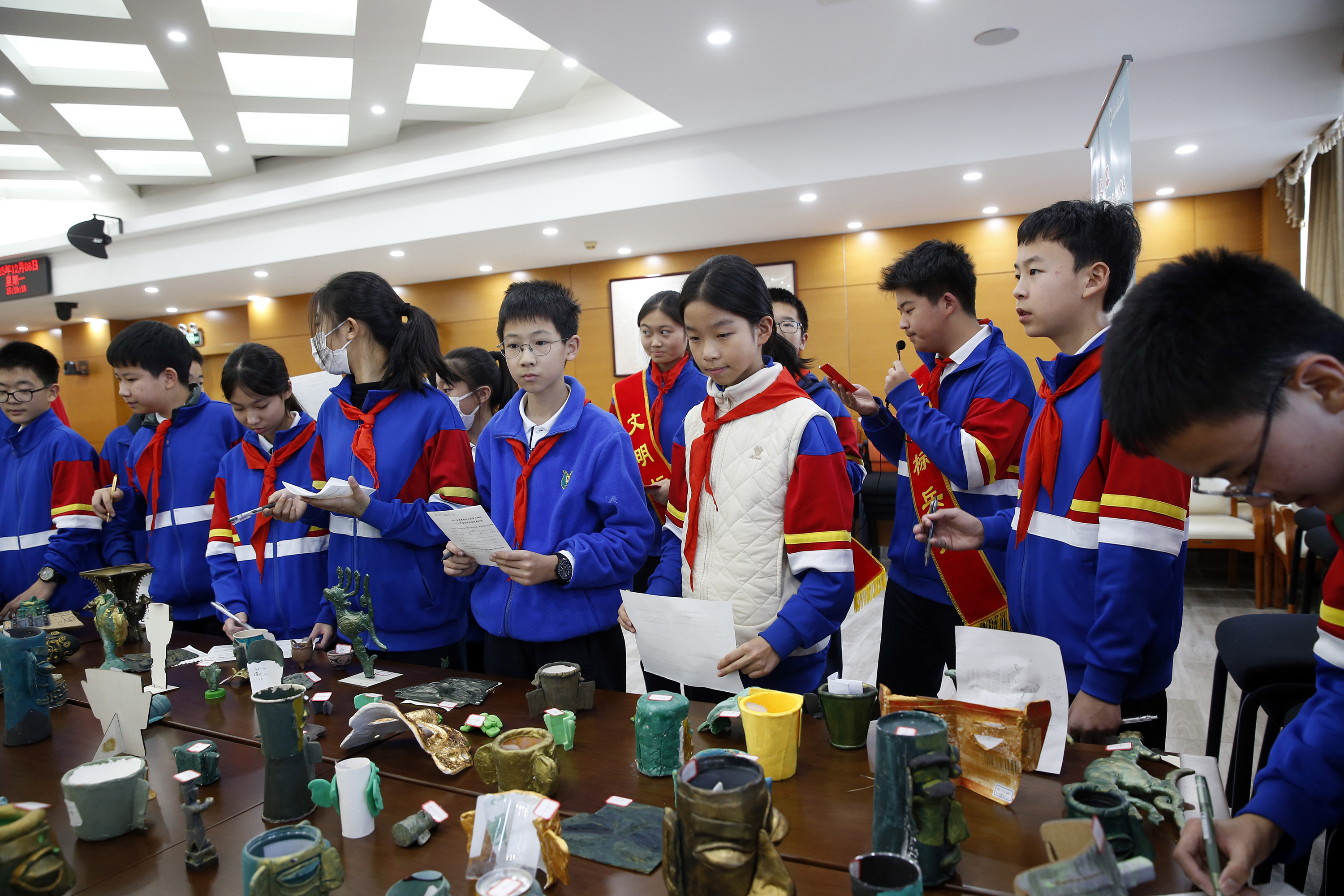 展览划分为六大主题展区,聚焦建筑构件、陶艺珍品、玉石雕件、青铜礼器、书画遗韵、农耕器具及古钱币等多元领域。每一件仿制作品均承载着学生对历史脉络的独到诠释与情感共鸣。活动当日,学生团队化身“文化传承使者”,为参观师生提供沉浸式导览服务;各班级分会场同步推出“匠心独运”创作视频展播,现场更设有“历史智慧擂台”互动问答环节,立体呈现学子们对传统文化的创新解读与自信表达。