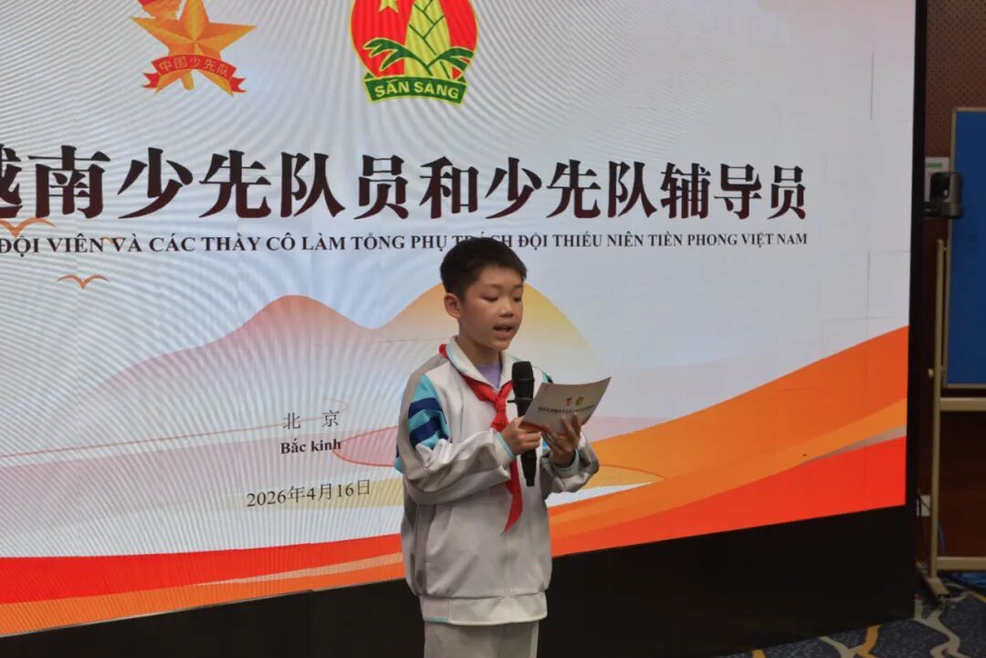仪式后的交流分享环节,气氛尤为热烈。八一学校少先队员郑舟遥,前一天与越南少先队员一起参加了习近平总书记、国家主席与越南苏林总书记、国家主席共同会见中越青年代表的活动,内心充满了激动与崇敬。这难得的经历让他感到责任重大:“希望将来能为国家的建设、两国的友谊出一份力量。”越南少先队员阮琼簪也动情地说:“很荣幸参加两党两国最高领导人的会见,我一定会努力学习、认真锻炼,成为名副其实的友谊小使者。”