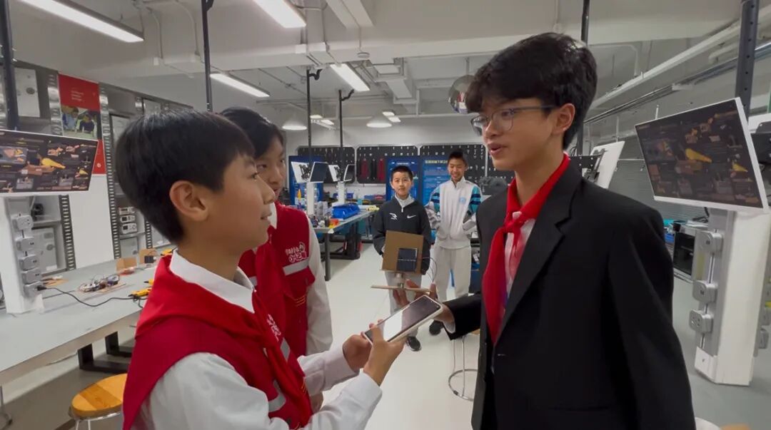在学校的“开物苑”,中越少先队员并肩而坐,“同上一堂科学课”,合作组装“太阳能对日定向装置”,让交流更加生动。尽管语言不通,但孩子们通过手势、微笑和简单的单词愉快地交流。当装置成功实现自动追光时,现场响起了阵阵笑声和掌声。