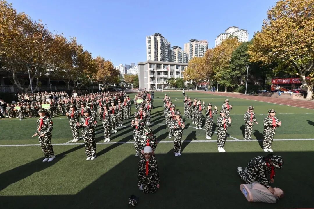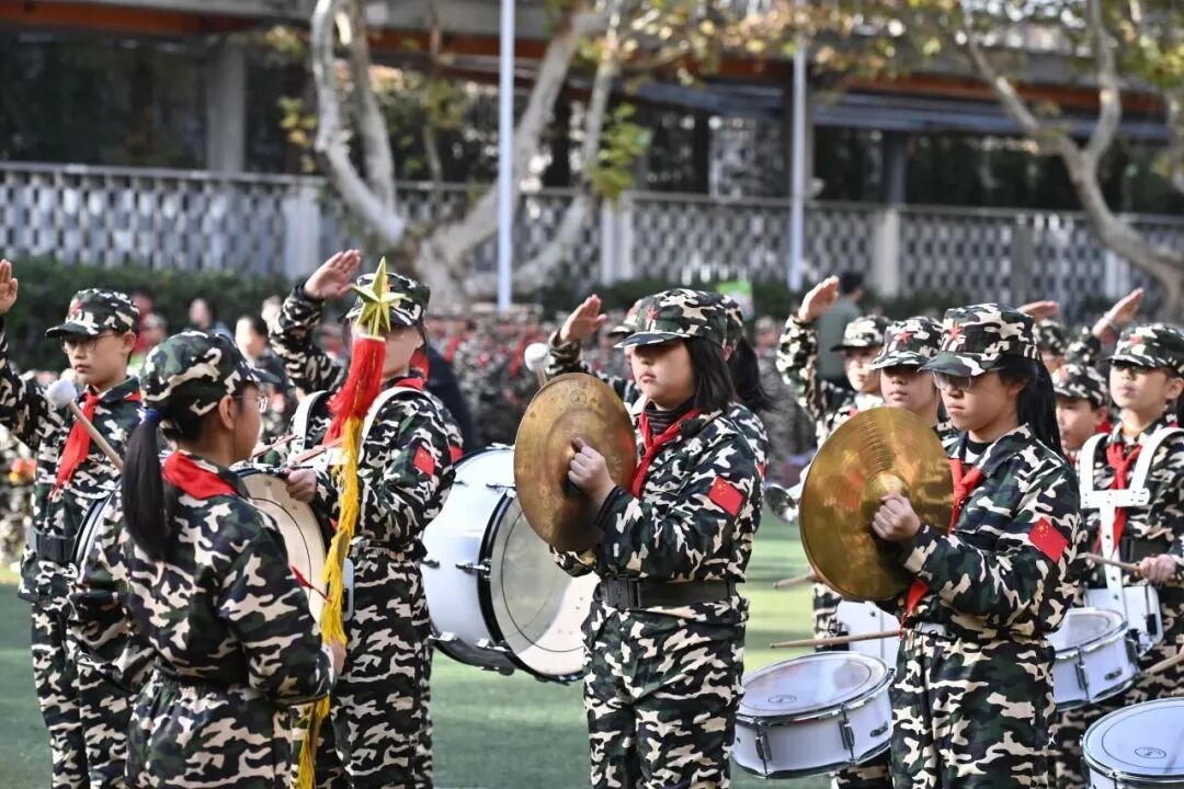 迷彩服衬着青春面庞,军号声点燃少年梦想。11月28日,“迷彩砺青春,戎光耀少年”曹杨新村街道社区2025年大会操活动在上海市普陀区沙田学校举办。