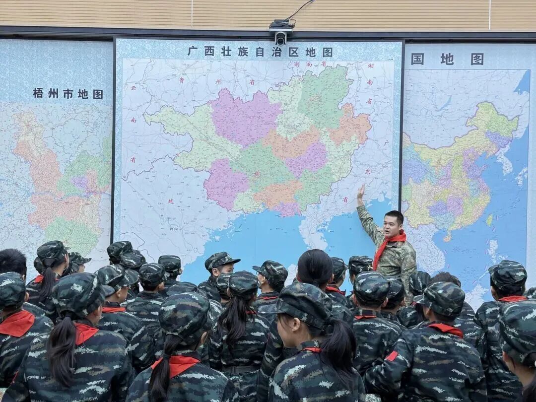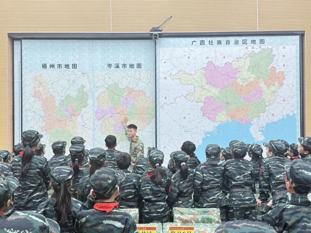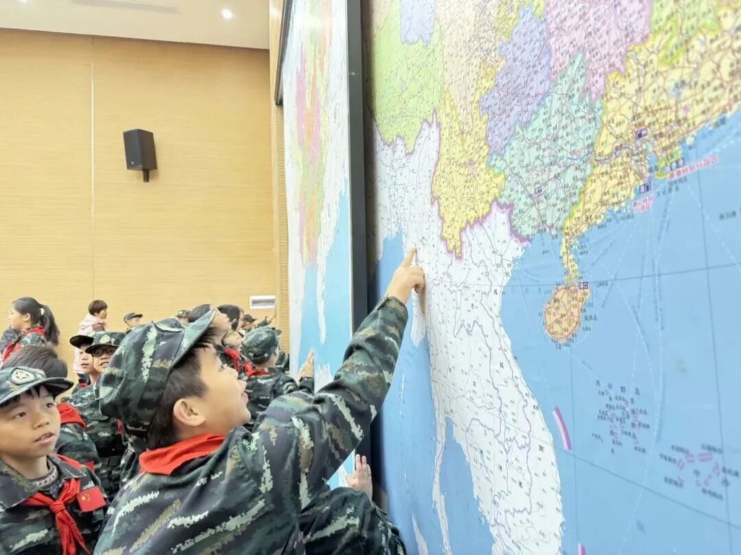 队员们走进地图展区,参观世界、中国、梧州、岑溪地图,从宏观疆域到家乡坐标,在地理脉络中感受祖国广袤,厚植国土守护意识。