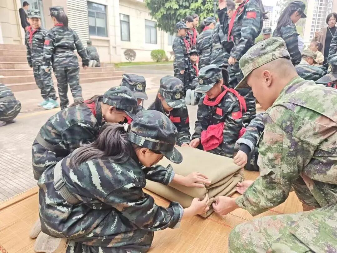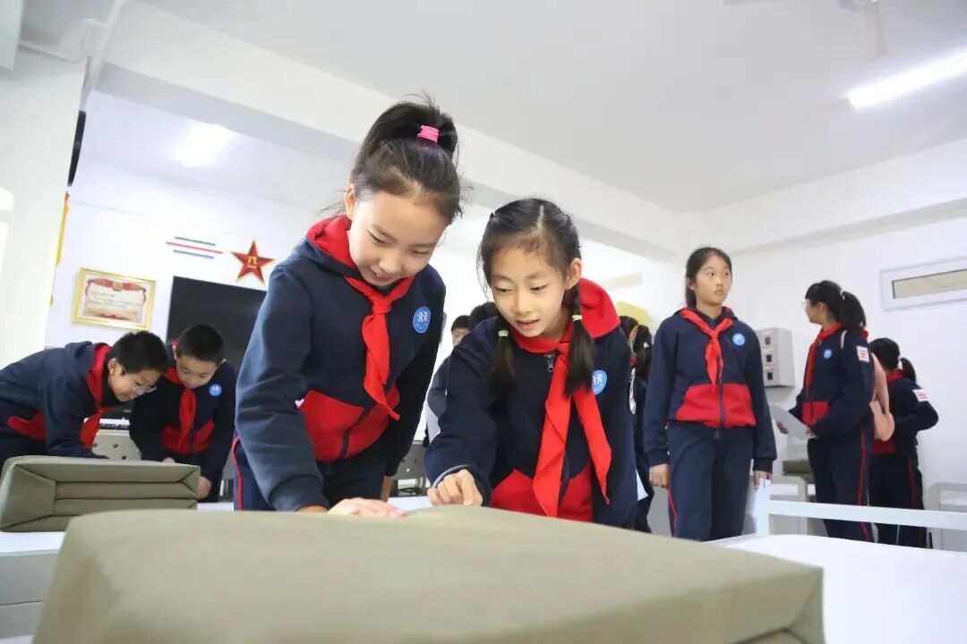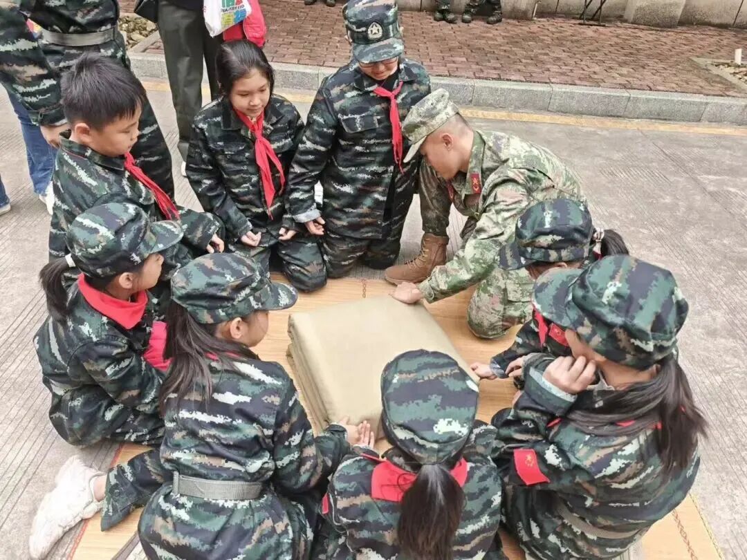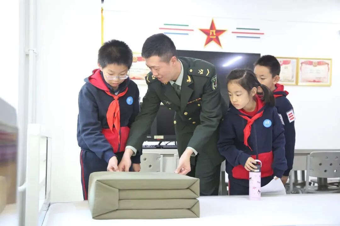 深入军营生活区,学习叠“豆腐块”被子,一折一叠间,培养严谨作风,将军人素养融入日常。