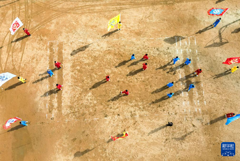 9月16日,乌拉街满族中学学生在操场进行珍珠球比赛(无人机照片)。