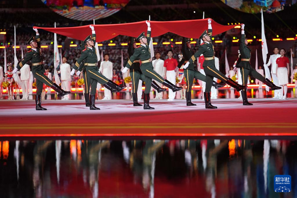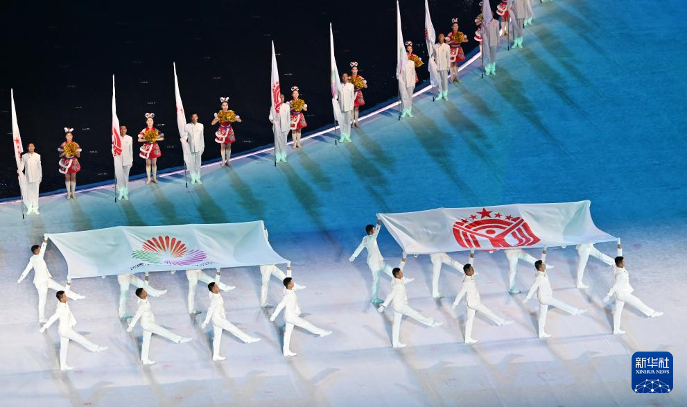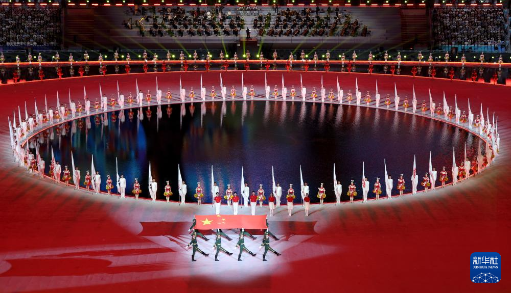 11月9日,中华人民共和国国旗、中华人民共和国运动会会旗和第十五届全国运动会会旗在开幕式现场升起。