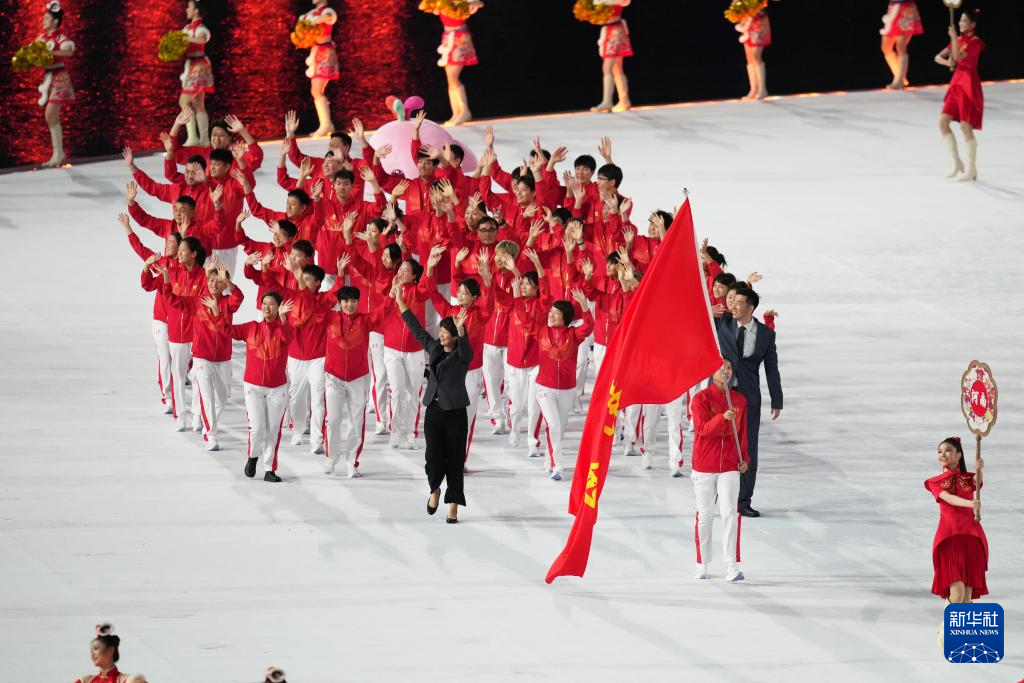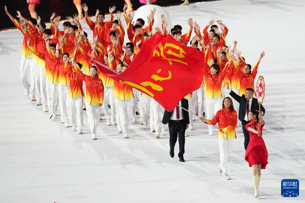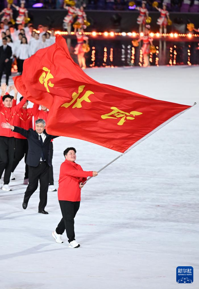 11月9日,湖北省体育代表团旗手郑钦文在入场仪式上。