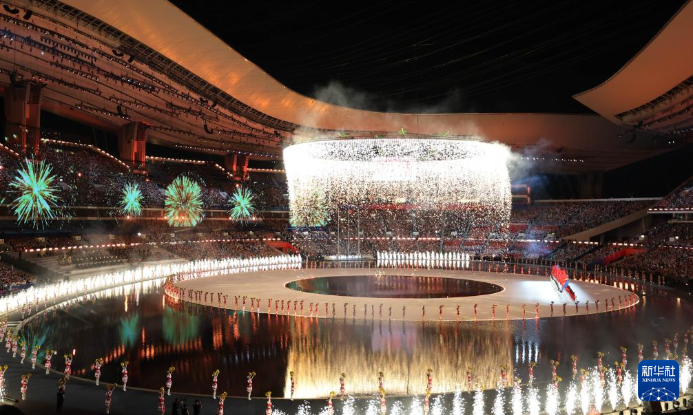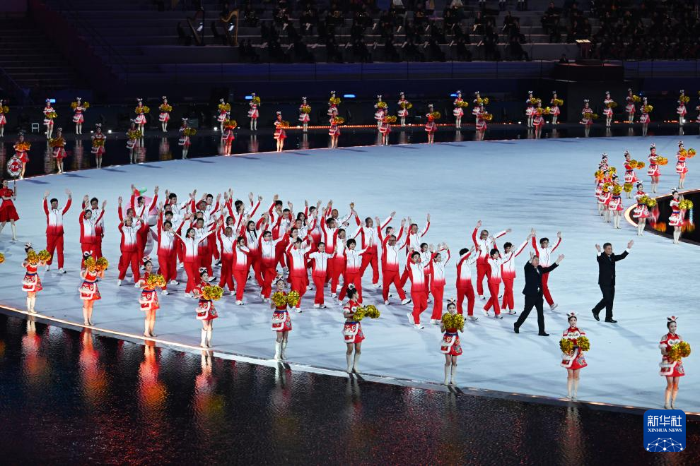 11月9日,第十五届全国运动会吉祥物“喜洋洋”和“乐融融”在开幕式现场表演。