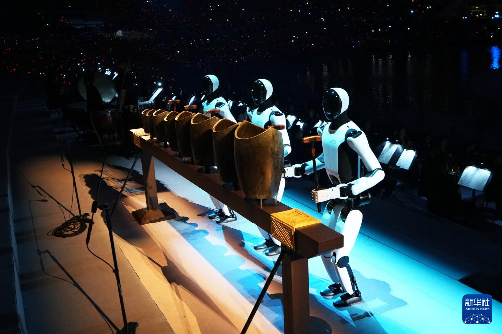 这是11月9日拍摄的开幕式上的机器人表演。