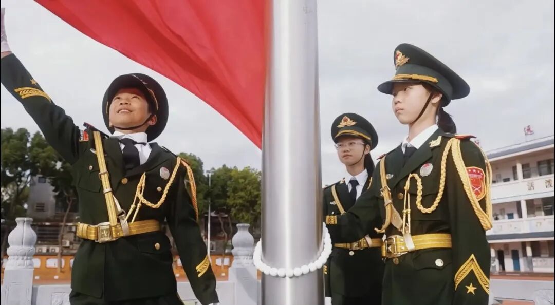伴随着庄严的国歌声,五星红旗缓缓升起。全体师生面向国旗肃立,现场氛围庄重肃穆。
