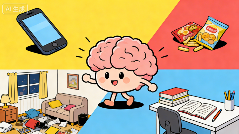 当任务让我们感到焦虑、恐惧或不确定时,大脑中负责情绪的杏仁核会发出警报:“危险!快逃!”于是我们本能地去做那些更轻松、更有即时反馈的事情——刷手机、吃零食、整理房间……这些行为能让我们暂时获得安全感和掌控感。