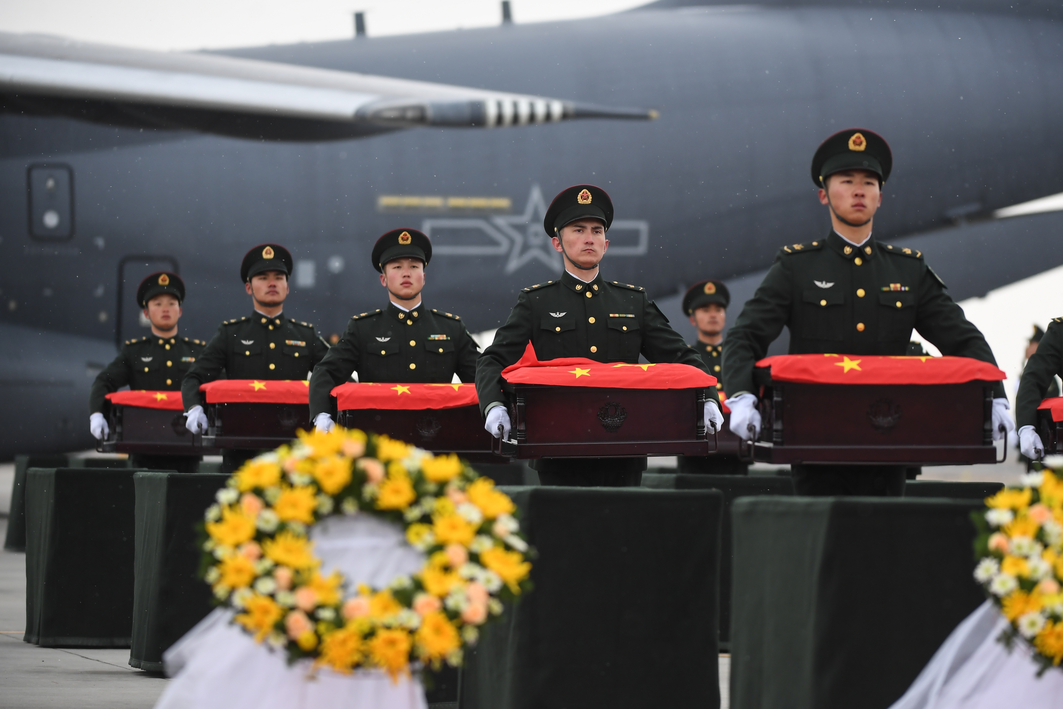 2023年11月23日,第十批在韩中国人民志愿军烈士遗骸由我空军专机护送从韩国接回辽宁沈阳,25位志愿军烈士遗骸及相关遗物回到祖国。新华社记者 潘昱龙 摄