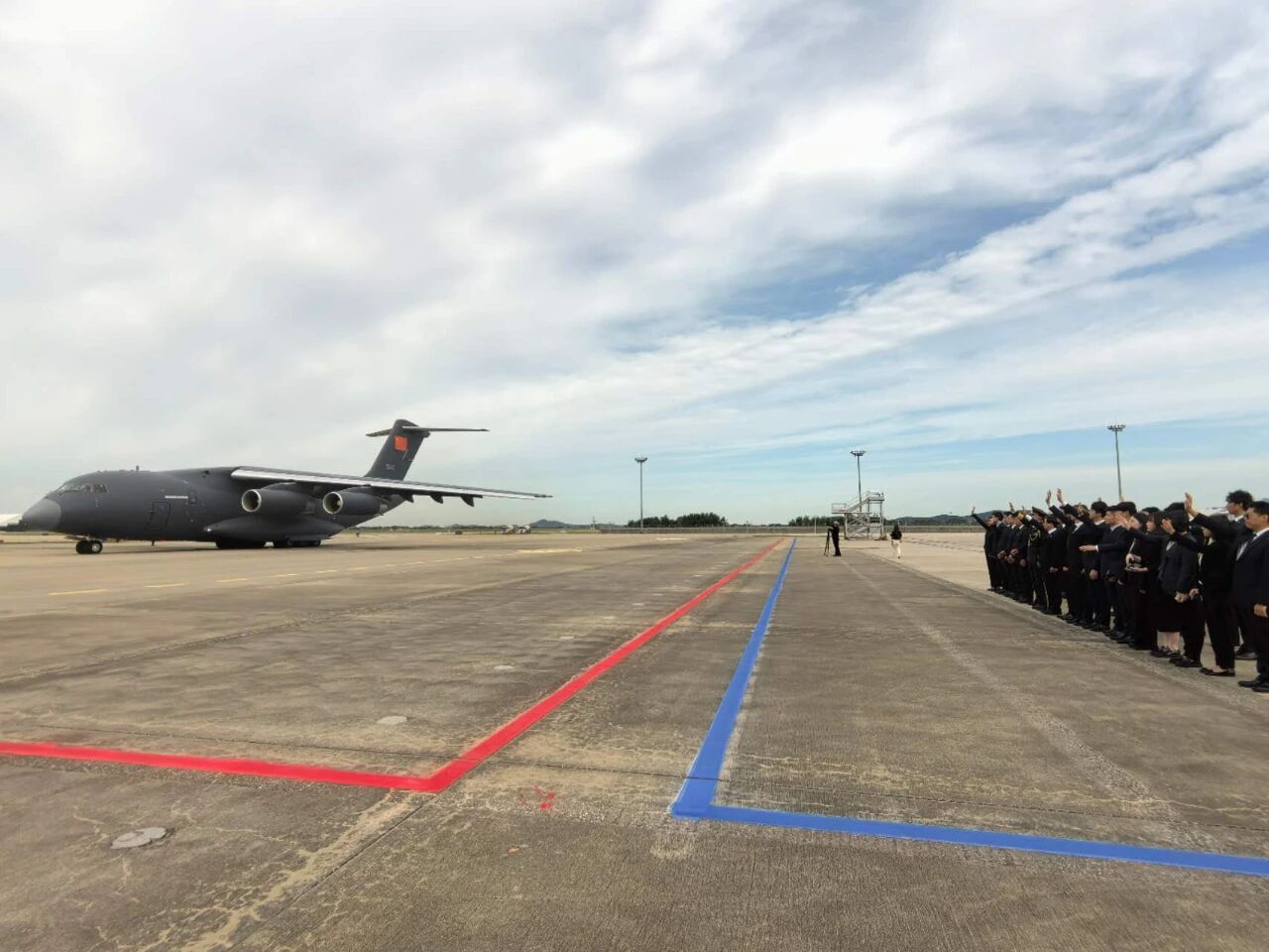 据中国驻韩国大使馆消息,9月12日上午,中韩双方在韩国仁川国际机场共同举行第十二批在韩中国人民志愿军烈士遗骸移交。退役军人事务部副部长马飞雄及代表团成员,中国驻韩国大使戴兵及使馆外交官,中资机构、华人华侨、留学生代表参加。活动开始后,全体中方人员奏唱国歌,戴兵大使为志愿军烈士遗骸棺椁一一覆盖国旗,全体参加人员向烈士遗骸行三鞠躬礼,表达深切哀思和崇高敬意。之后,中国人民解放军仪仗司礼大队礼兵护送英烈遗骸棺椁登上空军“运-20”专机启程回国。